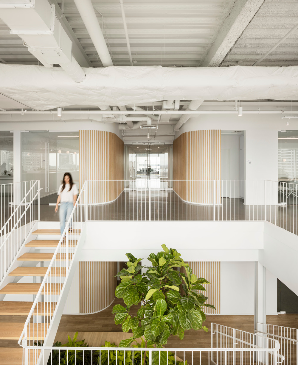 전반적으로 프로젝트의 중요성은 단순하고 중립적이며 시대를 초월한다. 이 작업은 목재, 투명도, 원시 콘크리트 및 흰색이 결합되어 있다. 이 아이디어는 모든 설치에 대해 선형성과 곡률성을 연구하는 것이었다. 곡선은 그 위에 떨어지는 빛을 반사하면서 작업 환경에 부드러움을 더한다. 이러한 제스처는 순수함과 미묘한 디테일에 의해 보는 사람에게 여유를 주는 것 외에도 자연을 정교하게 표한하기 위한 것이다. 다양한 개입은 자연적 시스템과 명소를 통해 자연환경에 더 가깝게 만드는 영감을 주는 장소를 통합하고 디자인하는 것을 목표로 하는 생물학적 성찰의 결과이다. 연구에 따르면 우리를 자연과 연결하는 디자인은 영감을 줄 뿐만 아니라 생산성과 복지를 향상해준다. 프로젝트의 유일한 컬러 공간인 라운지는 작업 공간에 보다 편안하고 활기찬 느낌을 준다.