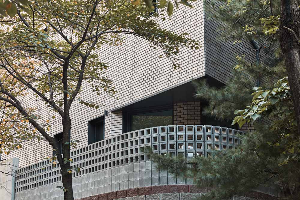 두 번째 문제는 프라이버시 문제다. 넓지 않은 대지의 형편상, 대부분 집은 대지 경계선에 법이 허용하는 한도 내에서 바짝 붙이게 되므로 옆집 창이 우리 마당과 거실을 내려다 보는 일은 피하기 어렵다. 빛이 필요해 공간을 열면서도 동시에 사생활 보호를 위해서 닫아야 하는 이중 갈등이 아마 택지개발지구 내 많은 땅에서 일어나고 있는 중이라 예상된다. 넛지 하우스의 1층은 담장을 열되 식재를 두어 시선을 가렸다. 2층은 벽돌 준공쌓기 방식으로 이를 해결했다. 빛이 필요한 집의 특성상 완전히 가릴 수도 없는 형편이라, 벽돌 사이사이를 비워 빛도 어느 정도 들이면서 앞집과의 스크린 역할도 할 수 있게 한 것이다. 덕분에 밤이 되면 벽돌 사이를 통과하는 빛의 풍경을 볼 수 있게 된 것도 즐거움 중 하나다.