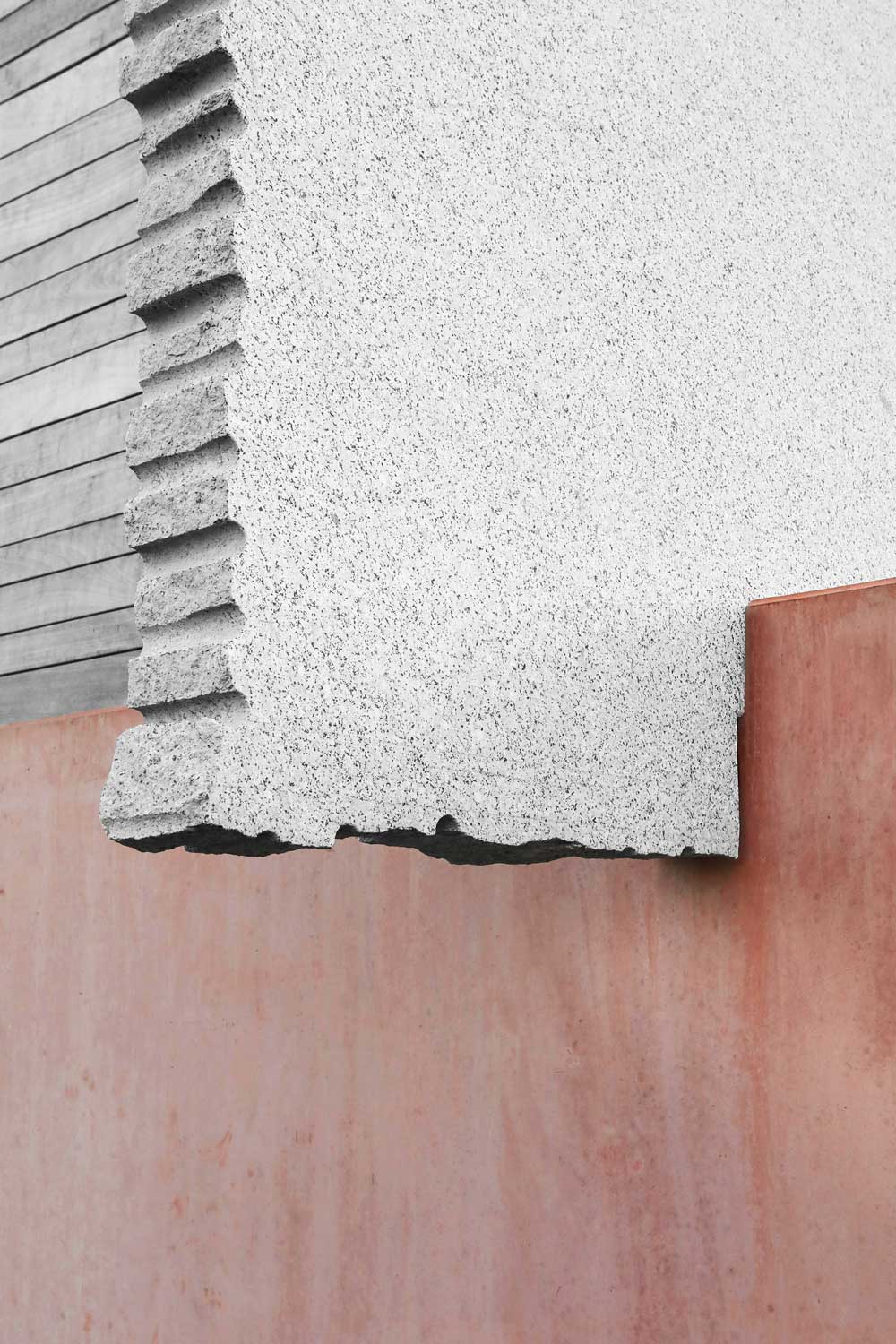 The Houses of Cards, built in an allotment of a small town in the province of Turin, in Northern Italy, are part of the experimentatio phase on the large granite slab for use as a load-bearing construction element. Both houses consist of a triple level of superimposed septa that connect thanks to a system of cuts and metal dowels. During the structural design phase, for normative reasons related to their certification, we chose to combine granite slabs with other concrete panels. This allowed us to study the material without having to go through a lengthy certification process which would have delayed and perhaps compromised the possibility of completing the project. Working in combination with the colored concrete panels has helped us to understand the limits and opportunities of this material. This is now helping us to develop the research and carry on the experimentation on pre-cast concrete through some other projects we have now underway.