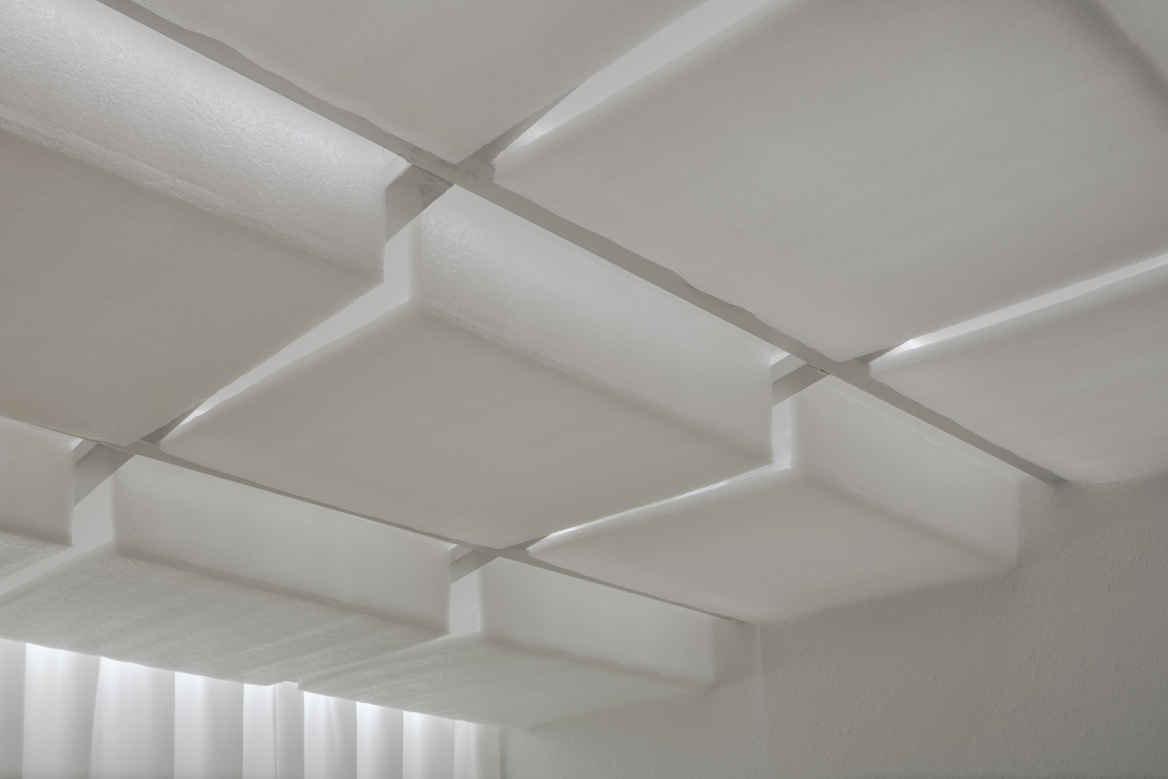 Throughout all spaces tailor made materials and objects are combined in delicate ways with affordable, off-the-shelf materials such as packaging foam, a contrast often seen throughout Bangkok, which despite its abundance of luxury and shine manages to maintain its agility and inventiveness through its market and street food culture.