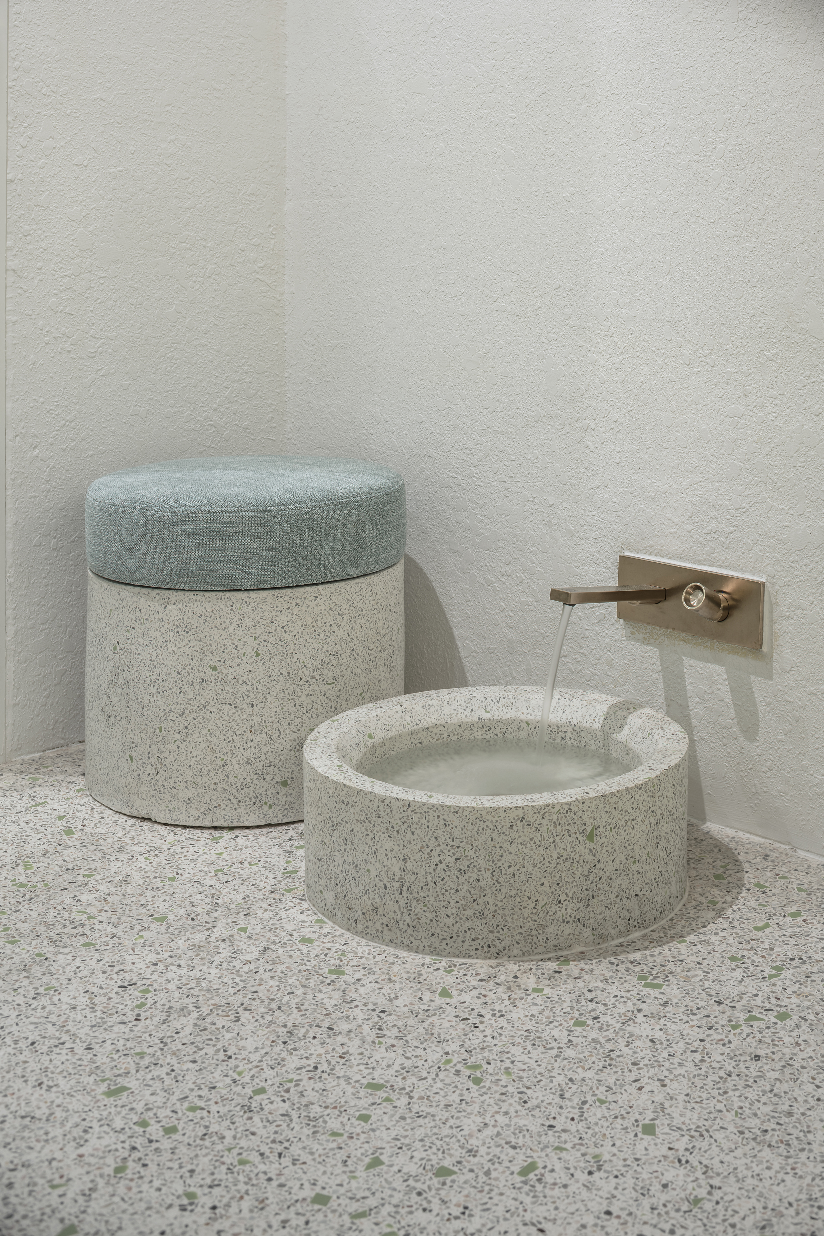 Throughout all spaces tailor made materials and objects are combined in delicate ways with affordable, off-the-shelf materials such as packaging foam, a contrast often seen throughout Bangkok, which despite its abundance of luxury and shine manages to maintain its agility and inventiveness through its market and street food culture.