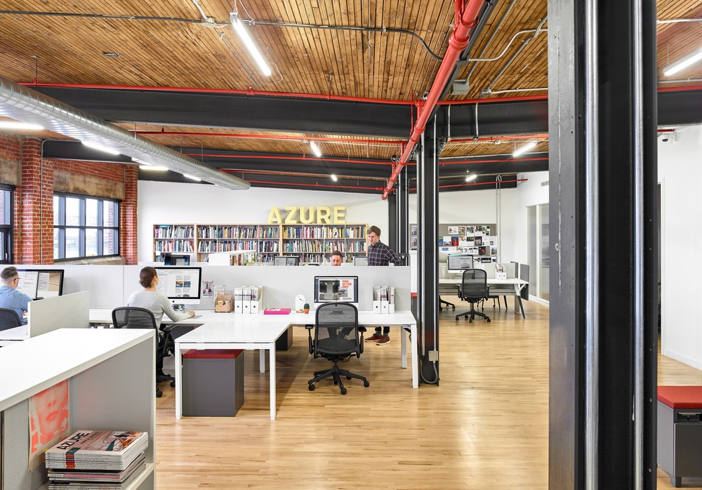 Dubbeldam Architecture + Design은 토론토에 기반을 둔 선도적인 글로벌 아키텍처 및 디자인 미디어 브랜드인 Azure Publishing의 본부 설계를 의뢰받았다. 새로운 사무실은 도시 서쪽 끝에 있는 유서 깊은 산업 지역인 Junction Triangle에 위치한 이전 변압기 공장에 자리 잡고 있으며 복합 용도 지역으로 큰 변화를 겪고 있다.