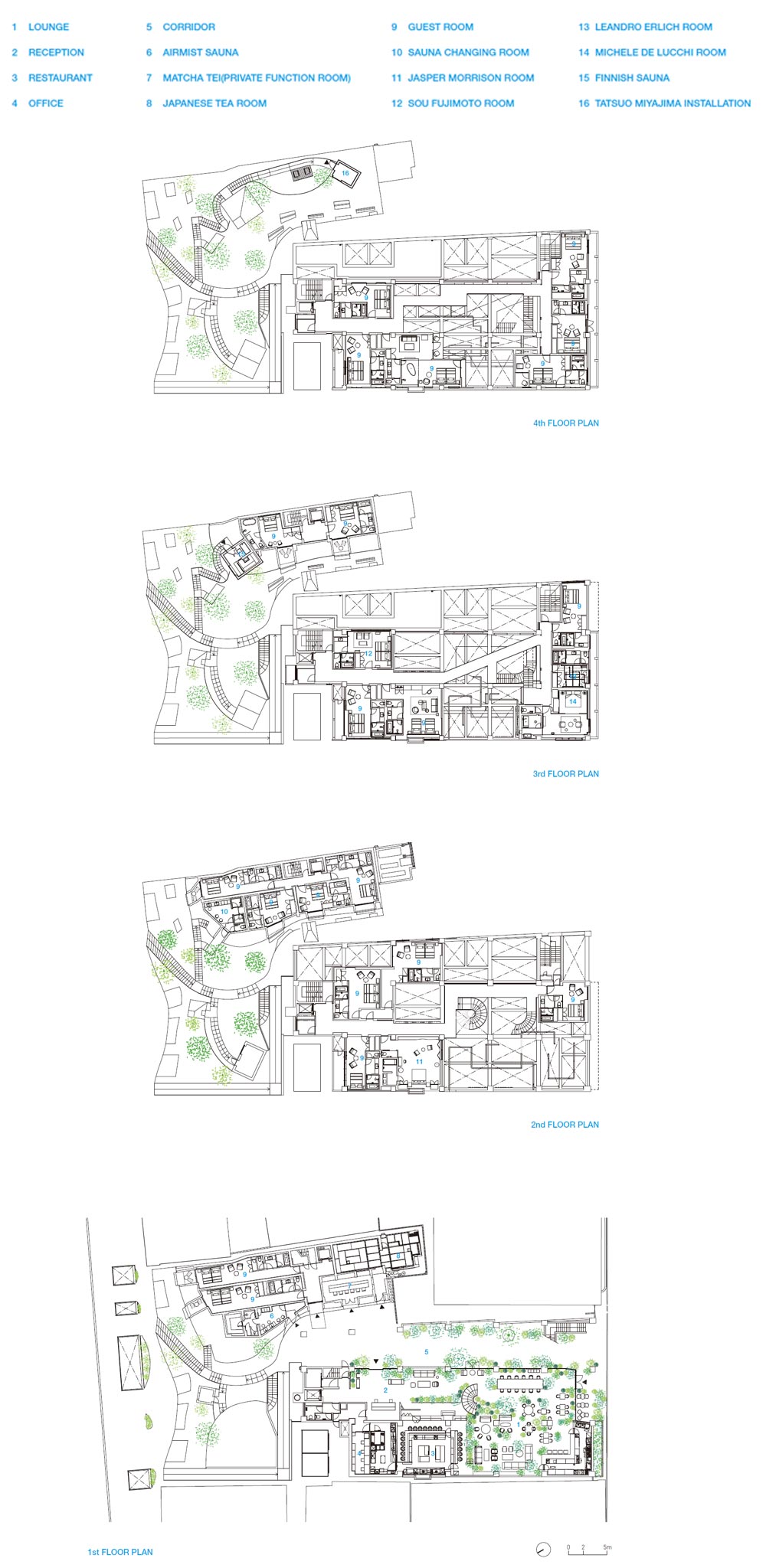 Guest room design Michele De Lucchi, Jasper Morrison, Leandro Erlich, Sou Fujimoto