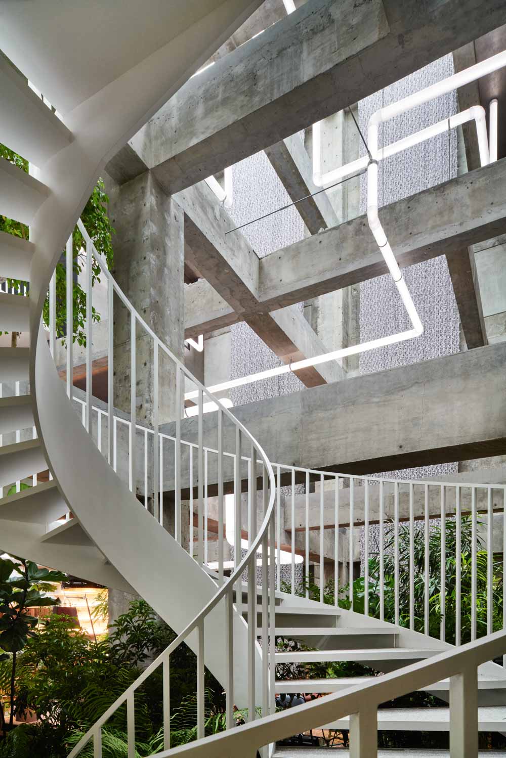The design team visited the site at the earliest opportunity, and found a banal four-storey RC structure. They felt that something drastic was needed to realise any potentiality, and at the start of the design process, they decided to dismantle the walls and floors across all four storeys to create a gigantic central atrium This initial idea inspired the ensuing design concepts.