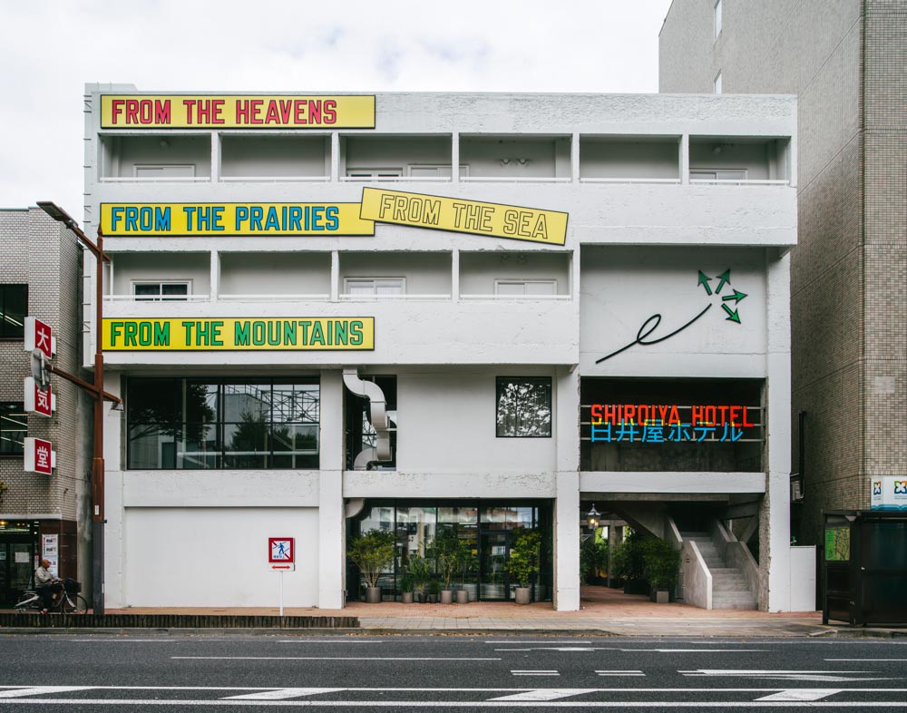 시로이야 호텔은 군마현 마에바시 중심에 있는 사라진 건물을 되살리기 위해 시작됐다. 건축가는 도시의 재생을 돕기 위해 약 40년 전에 여관이 이전한 4층 규모의 철근콘크리트 본관 건물을 개조했는데, 이 부분이 “헤리티지 타워”이며, 추가적으로 “그린 타워”라 불리는 새 건물이다.