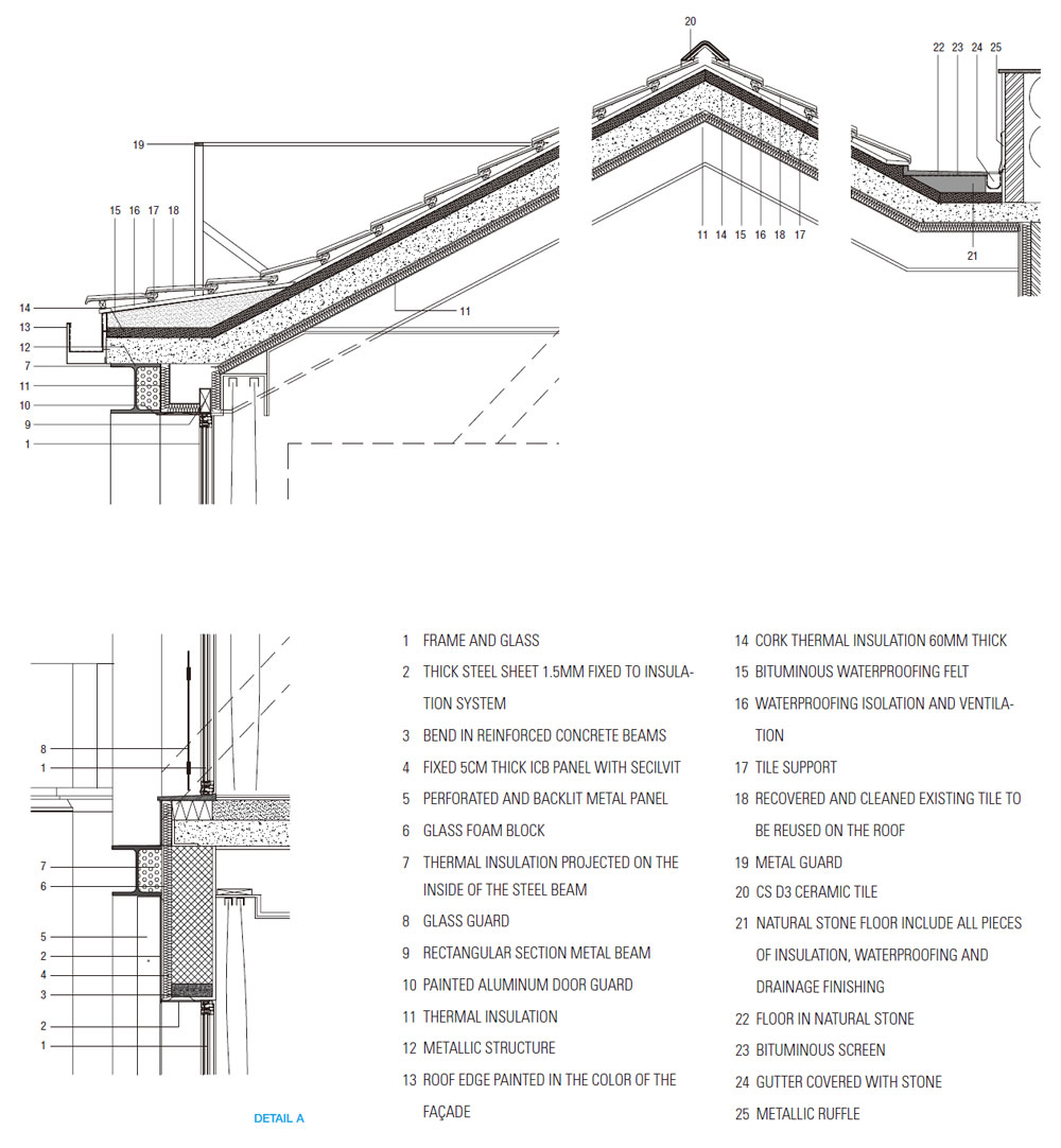 건축가는 5세기의 역사를 지닌 대지를 다루면서 이 유적을 보존하기로 결정했다. 새롭게 들어설 건물은 디자인팀이 발견한 기존의 기억을 간직하면서도 명확하고 현대적인 디자인을 지녔다. 새로운 것이 역사적인 유적에 통합되는 과정은 이질적인 두 개의 개념을 합치는 것이 아니라 일관성 있고 완전한 것을 만들어 내는 것이었다.
