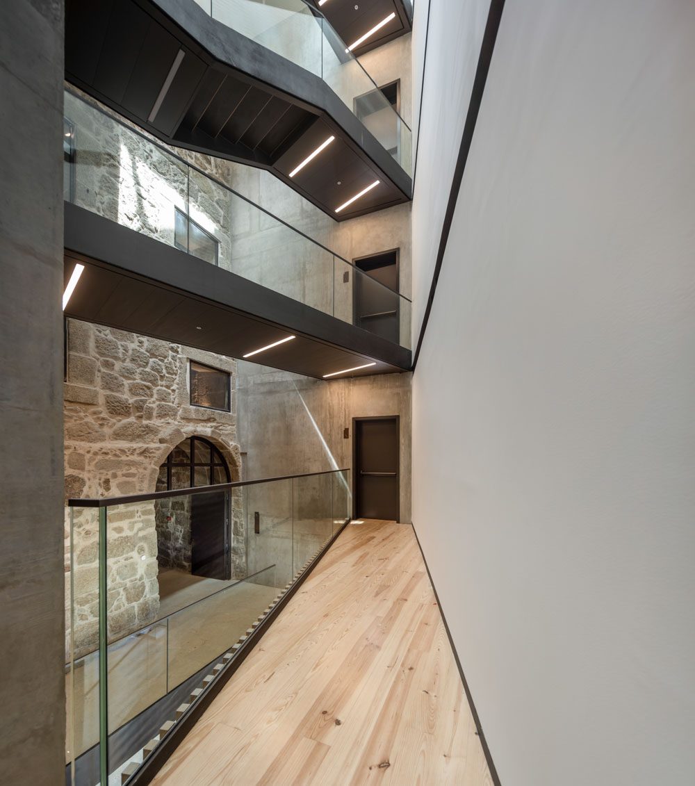Having to deal with a building complex of five centuries, as a conceptual approach the architects decided to keep the ruins, the new building is integrated with the historic ruins, keeping the existing memories as we found them and building what was new with a very clear and contemporary design. Theirs challenge was to create something coherent and whole, not a sum of different parts.