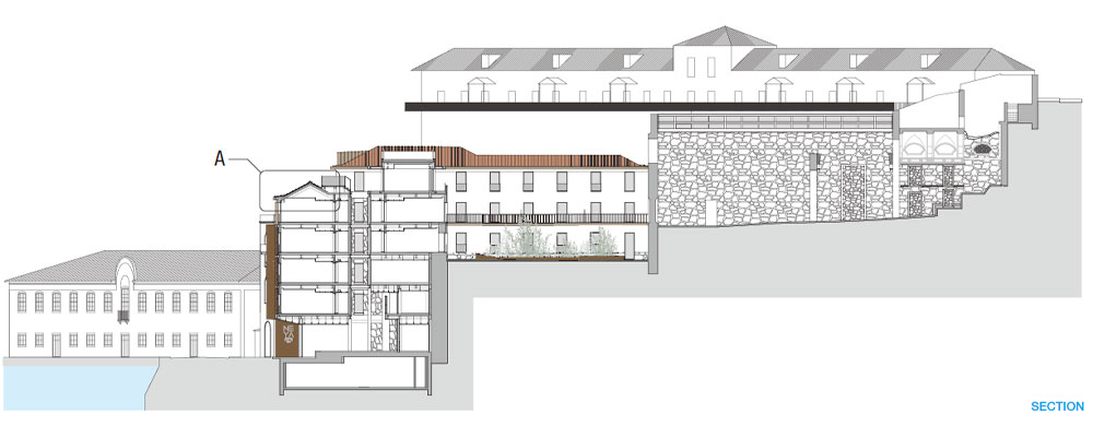 The urban intervention had as a starting point a thorough study minding the evolution of the historical buildings along the centuries, with records of its various uses, monastic and industrial among others, and the drafting of a 4-star hotel program that enhances the history of the place for contemporary use.