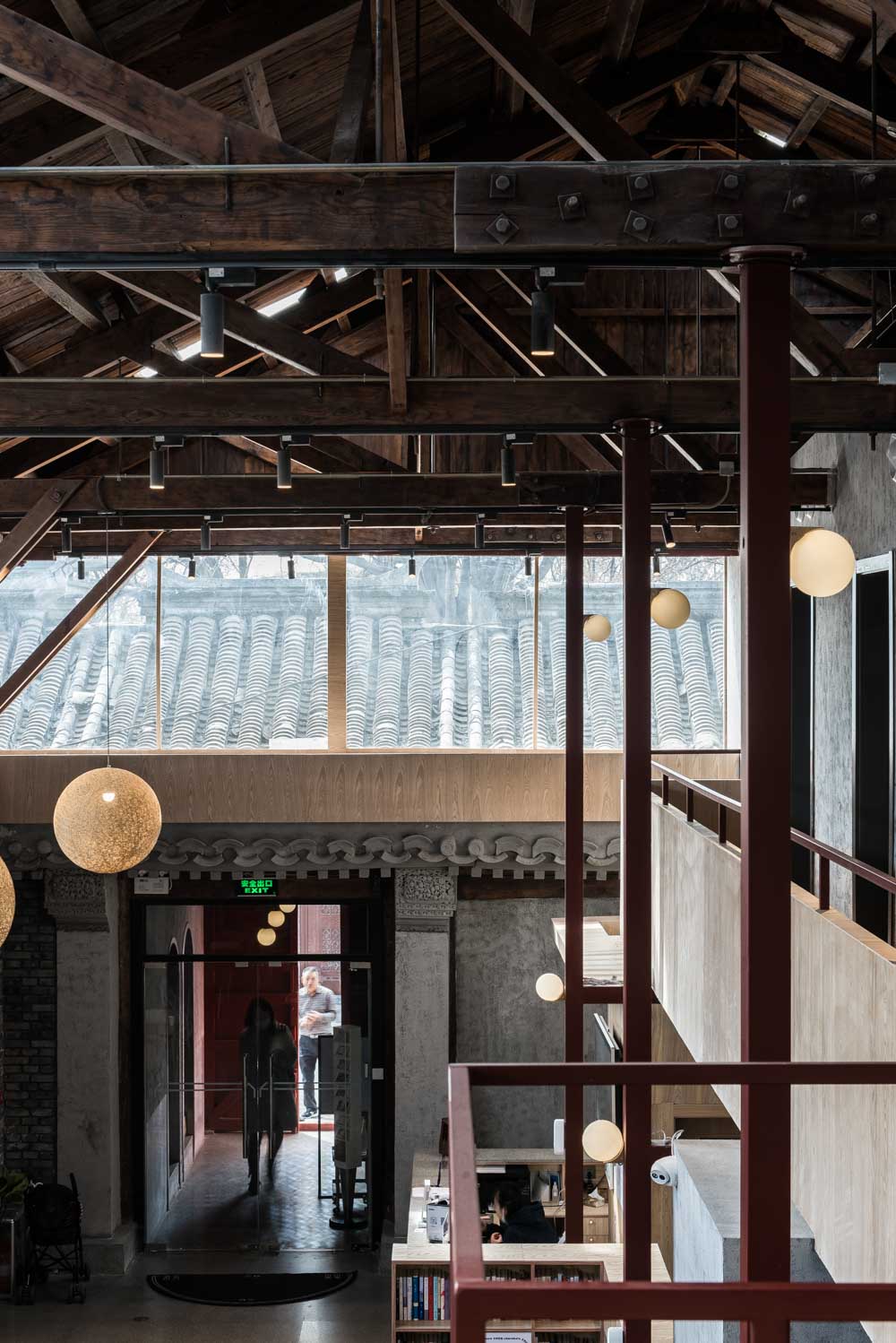 기존의 구조적 비율에 따라 콘크리트 기둥은 같은 방법으로 서까래와 연결된다. 모든 디자인은 원래의 오래된 건물의 구조적 논리에 따라 개발되었다. 계단의 구조는 자연스럽게 공간의 시각적 초점이 되지만 그 회전 형태와 규모는 여전히 전체적인 분위기에 통합되어 있다. 분위기를 만드는 주요한 시각적 방법은 회색의 질감 아래에 통나무와 진한 빨간색을 배치하는 것이다. 또한, 골목에서 사람들의 감정을 단순하고 섬세하게 추상화하고 구성하는 것이 중요하다.