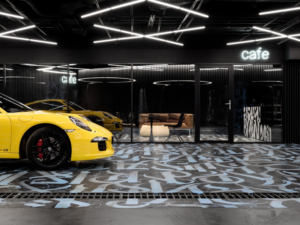 BLACK STAR 라벨 기호는 내부공간에 고리 형태로 조명 구조를 만드는 데 사용된 검은색 태양이다. 입구 영역에는 X자 형태의 조명을 설치하여 기호의 대비를 이루도록 했다. 실내를 더욱 활기차게 만들기 위해, 선형 램프는 출입구의 양쪽에 45도 각도로 배치되어 있다. 그것은 방문객의 시각적인 움직임을 만들어 내고 방문객을 시설의 주요 부분으로 이끈다. 세차장 입구 근처에 불빛 간판이 있어 방문객들의 눈길을 끄는 특징이 있다.