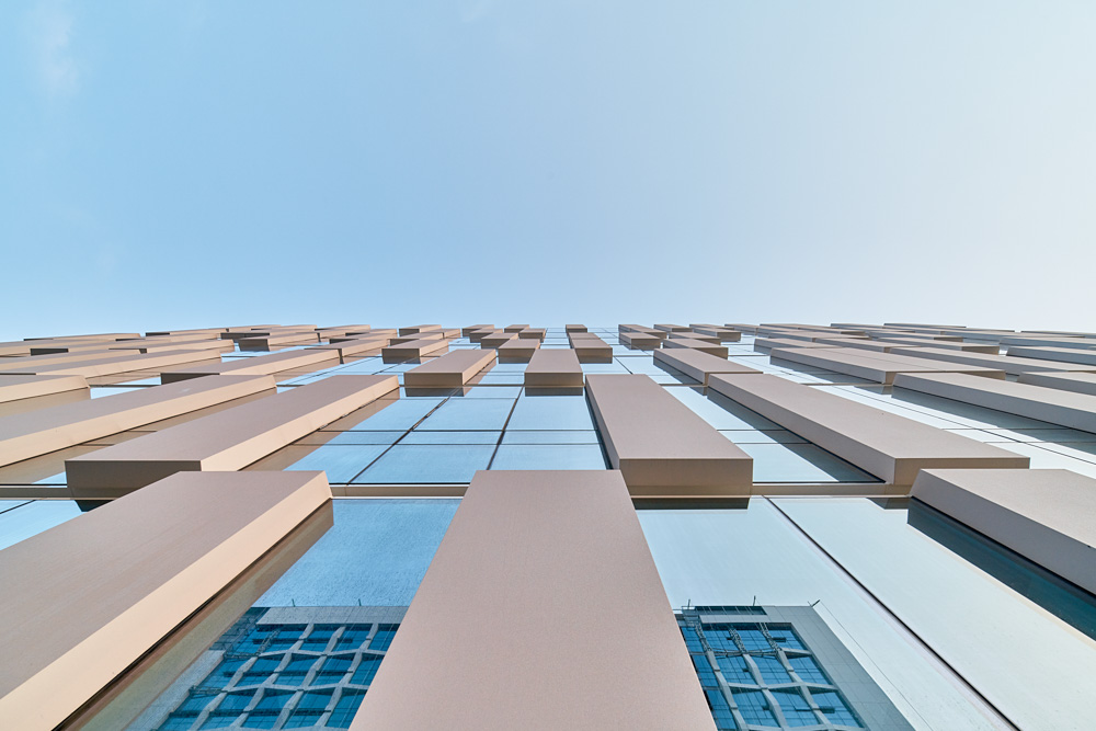 The façade is made of prefabricated module panels, which increased the construction efficiency. The shape of the module gives rhythm to the formability that may be simple through a tapered protrusion, and an aluminum composite panel, a common material as a panel mockup, is implemented as a unit module of 6m or more.