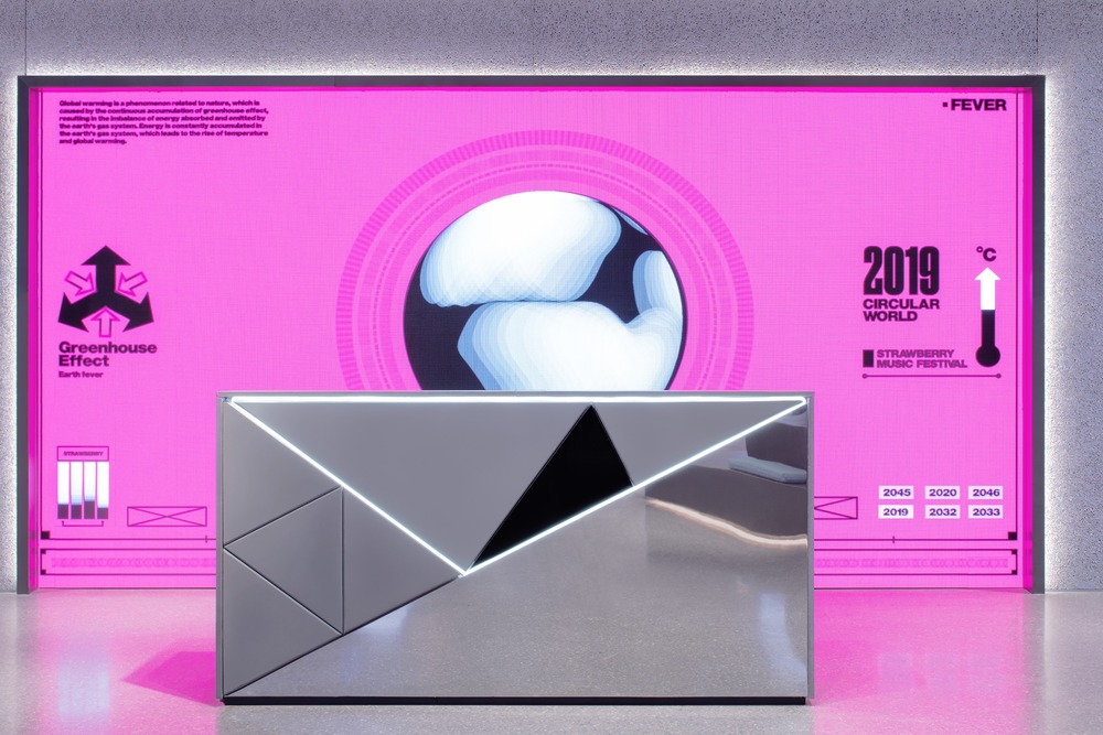 Besides the live events area, the anySCALE team also designed the pop-up shop which added to the limited-time offer buying appeal. The shop was created with a high color contrast by using a rose-pink splash over white hues. Positive and negative folded walls were additionally employed to display the products contained therein.