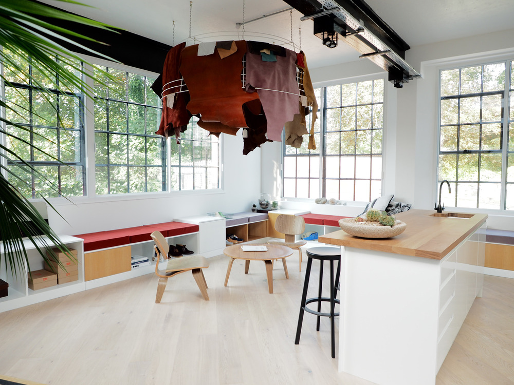 건축가는 이 작업공간을 Clarks Originals의 창작 과정의 핵심인 창작, 집중, 회의, 프레젠테이션 및 영감을 주는 순간들 사이의 연결점으로 생각했다.