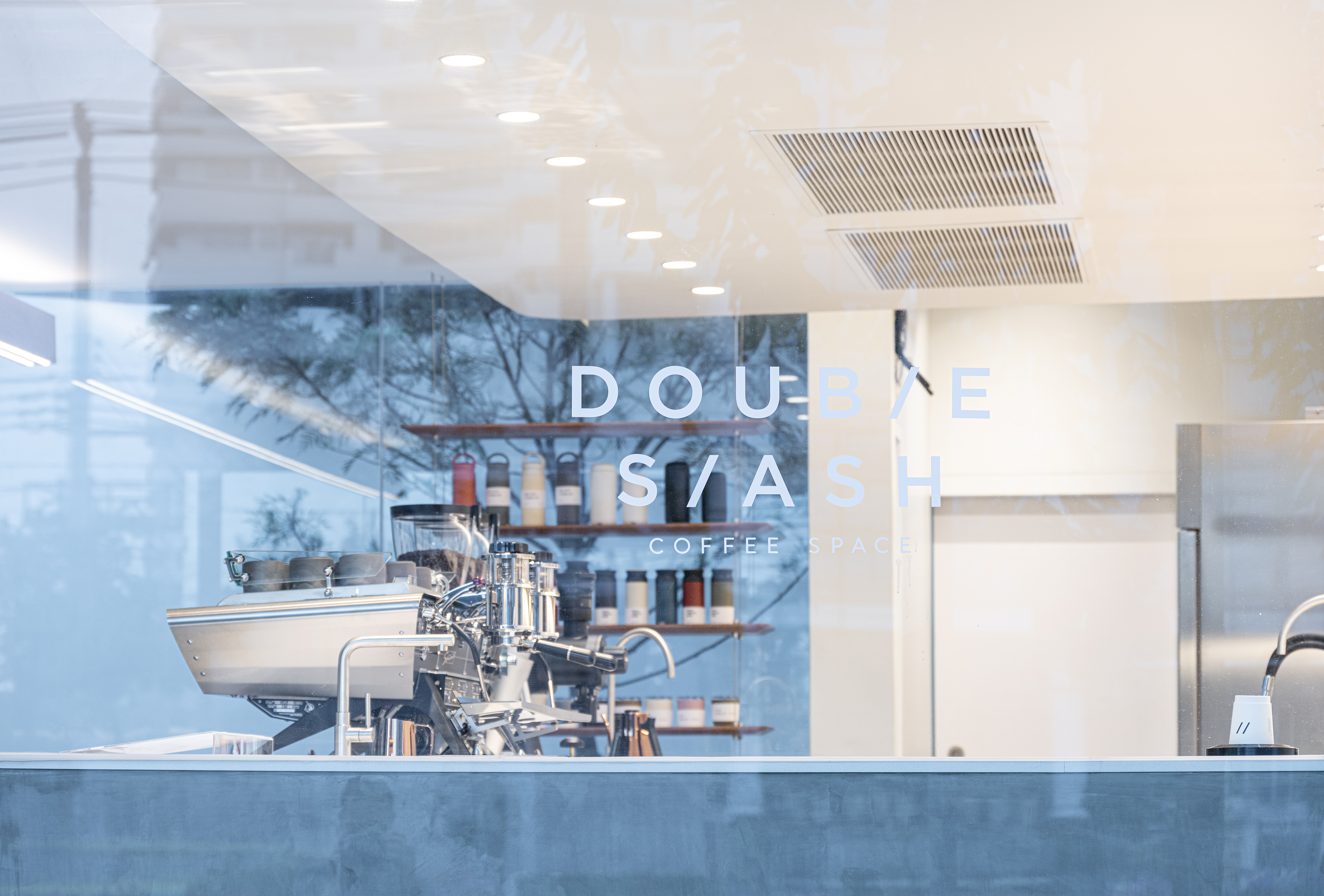 Double Slash의 건축적 정체성은 아르데코 시대에 국제적인 스타일에 영향을 받았는데, 이때 공기역학적 디자인이 가정용품과 건축물에 기본적으로 적용되었다. 과도한 장식 없이 곡선 형태와 각진 계획 방향 모두 건물에 대한 흐름과 시각적 움직임을 구축한다. 평평한 지붕 구조에서 산만함을 최소화한 긴 수평 골조는 고요함의 본질을 높이고 내부의 장인 커피 경험을 높이는 평평한 공간을 겸허하게 수용한다.