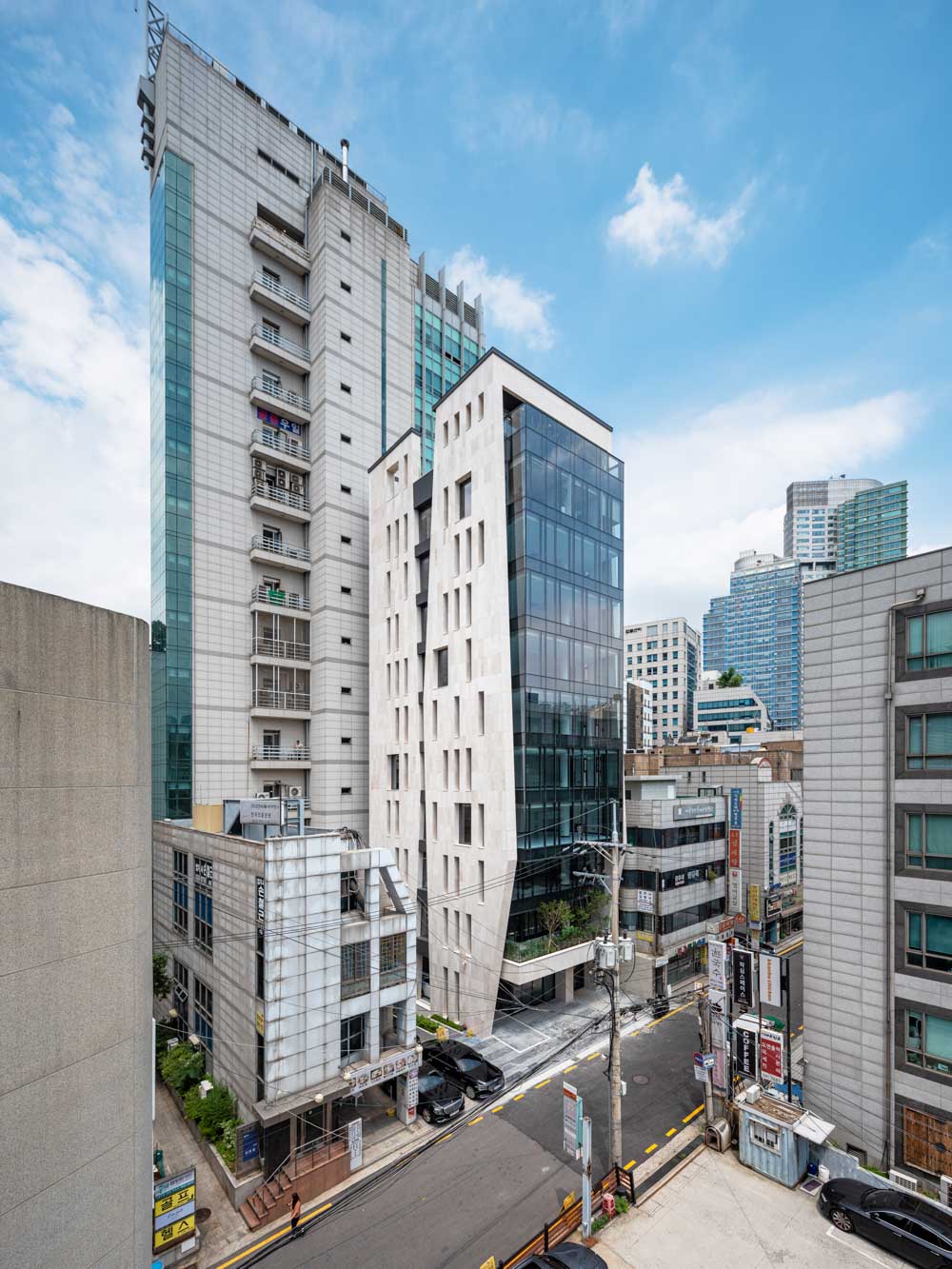 ‘The Style Building’ is located on a small site facing a side street in the eastern block of the Seoul Central District Court. It is around 100m away Seoul Nat’l Univ. of Education (Court & Public Prosecutors’ Office) Station. The site faces a relatively narrow alleyway of 8m, but has a considerable amount of floating population. The street was plain, without any joyful sceneries or eye-catching places. We wanted to make a small change here.