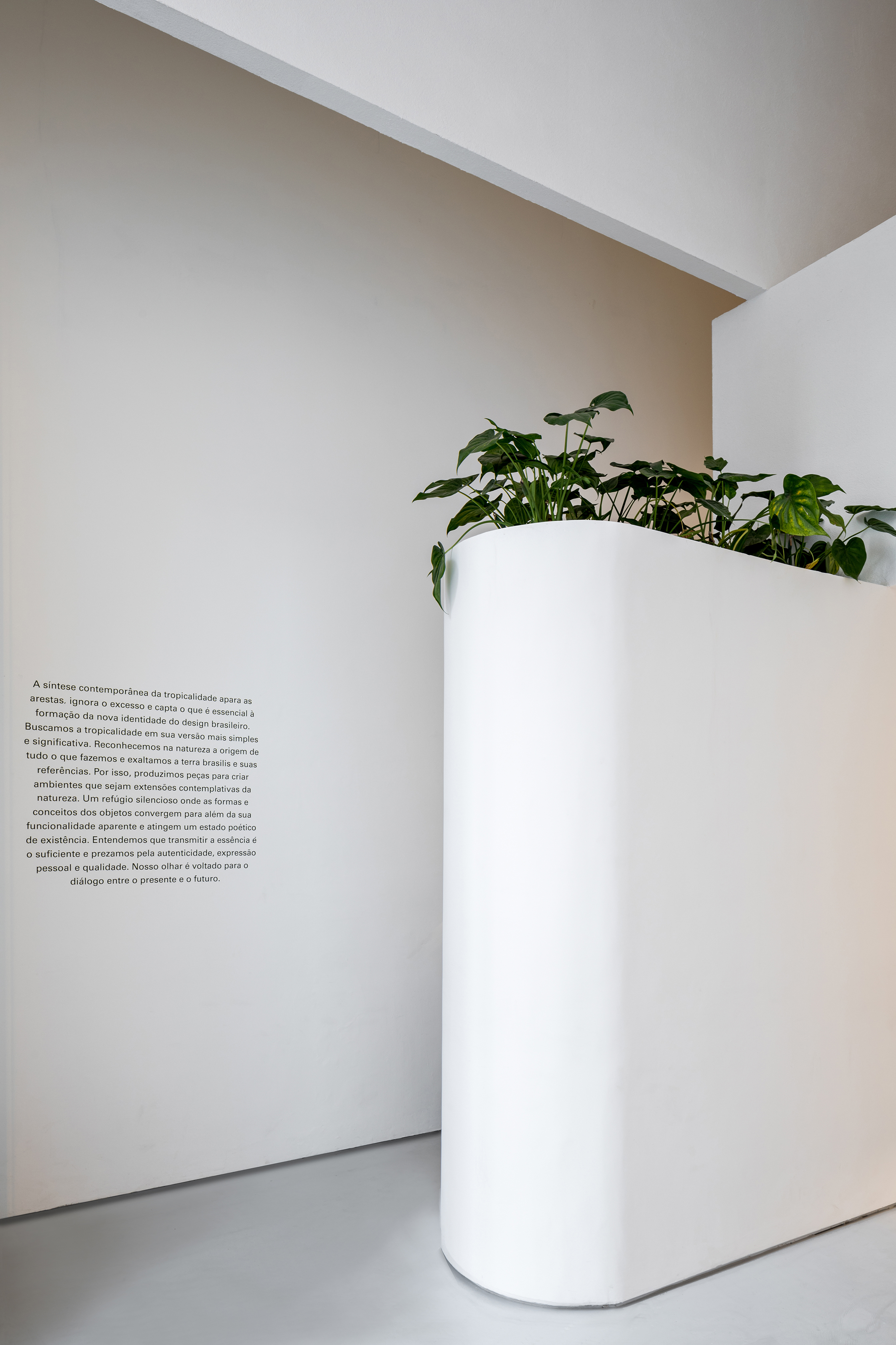 The result of its interior is made from a composition between shapes which form a final volumetry that has visual relationship with the designer’s pieces. The exposition area is held on the ground floor and mezzanine, and an indoor patio and coffee area complement the space. The store was built with the usage of few neutral coverings: hydraulic floor tiles at the facade, cement-based grouting for the floor, composition between textured and smooth walls to enhance volumetries. The lightning is diffuse, but also lights out the display spots in the store. The landscaping focuses on the essence that Wentz has: tropicality. The main purpose of the project was to reflect the brand itself, to be a mix matching display for the designer works.