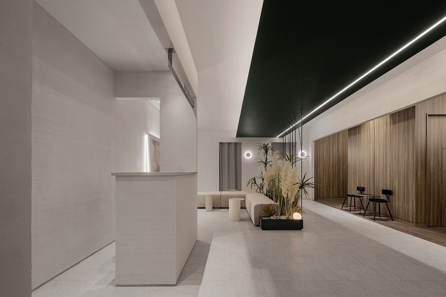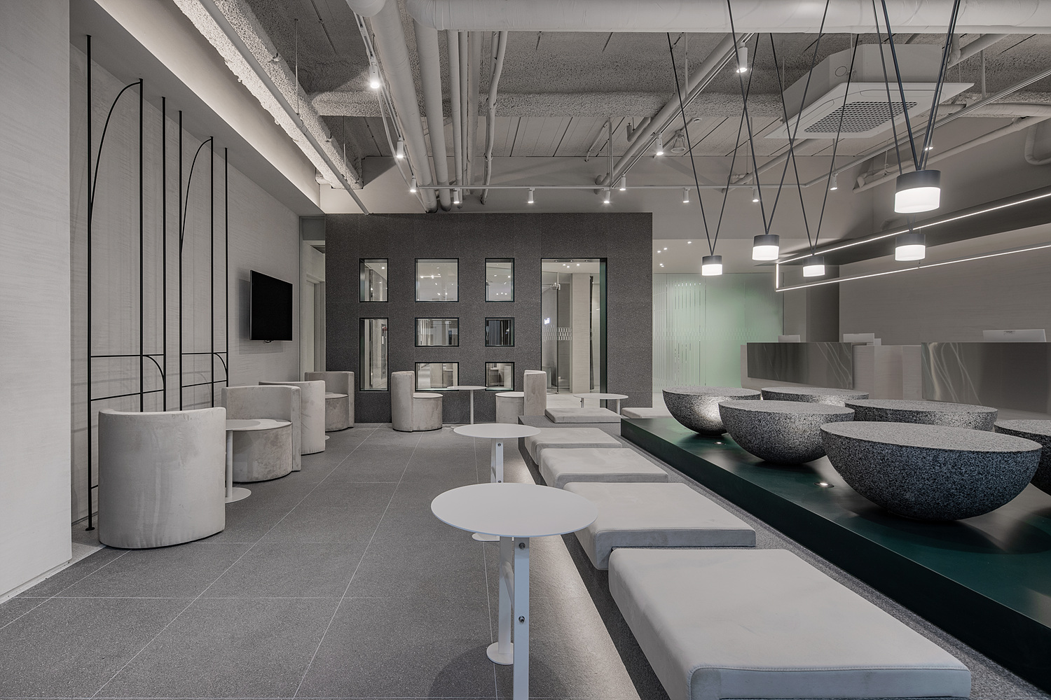 This project is not fancy. Don't put splendor where customers come into contact. The walls, seats, and display elements and landscapes are all right next to me. I just wish I could permeate it like that. Rather than a strong impact, I hope that people and space will naturally permeate each other and complete the story so that they can permeate and remain in memory.