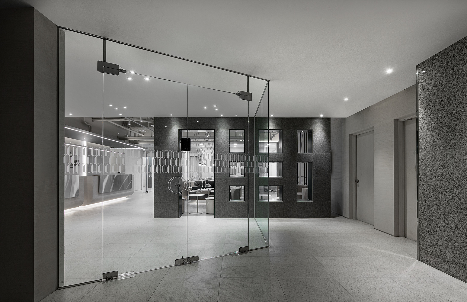 우리는 고객이 공간을 바라볼 때 상상할 수 있는 것을 즐긴다. 단순히 훤히 뚤려져 있는 공간이 넓다 라고 생각하는것과 상상 할 수 있는공간을 만들어 두고 그 틈이나 공간의 뒤를 엿 볼 수 있도록 만들고 그것이 공간을 접하는 이로 하여금 상상하게끔 만드는 것을 비교우위에 있다고 본다. 그리고 그러함으로써 공간의 재미와 깊이가 생길 수 있는다는 것은 여러번의 경험으로 더 잘 알고 있다. 처음 들어오는 고객에게 하나의 매스의 벽을 만들고 그 사이사이가 공간의 틈 그리고 그틈을 지날 수 있는 상상을 만들어서 그곳을 지나가고픔 호기심을 만들었다.