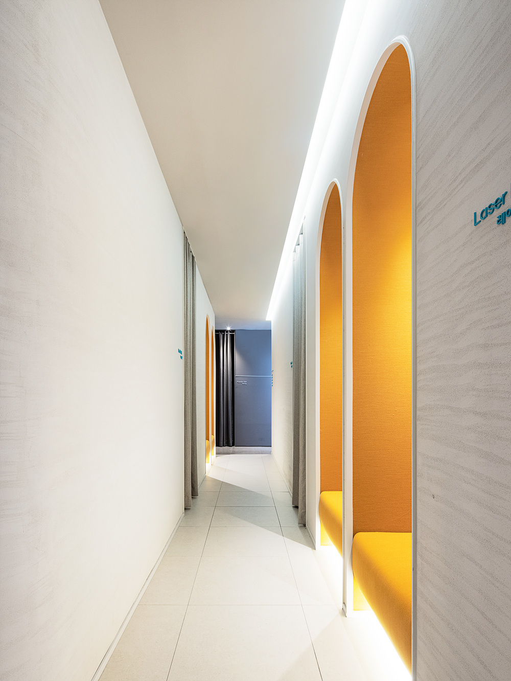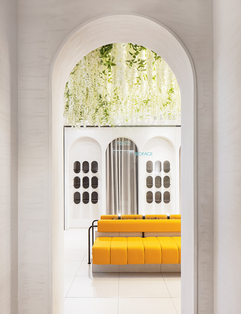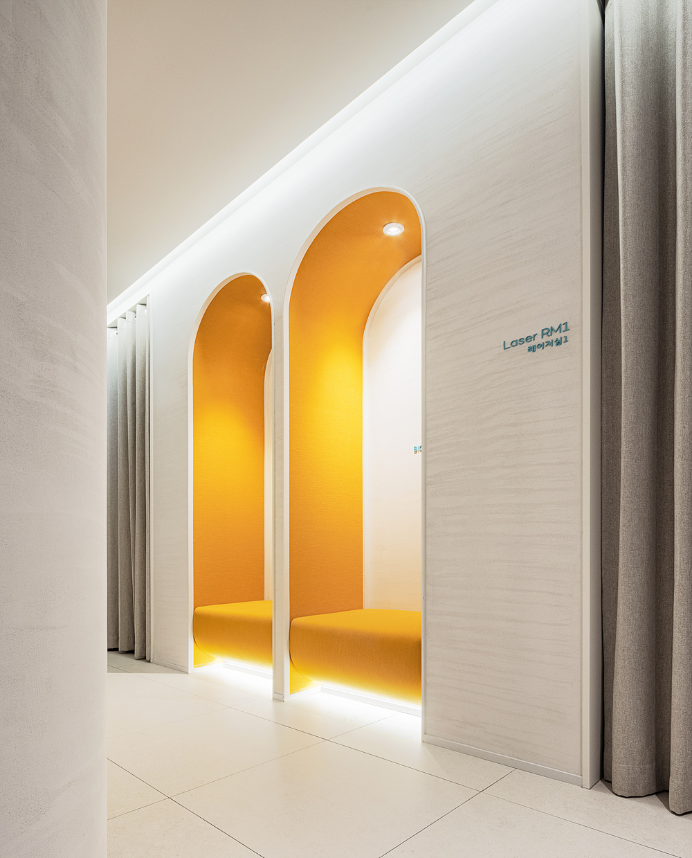 A space where you can be in awe or not heavy. Bioface is a skin clinic space. It should be easily accessed, but the caling of this project was to make it possible to experience a comfortable and accessible desire for beauty that is different from others. To capture such a space, we found a way to simplify the elements of the beauty of the temple in those days, as if worshiping Aphrodite, the goddess of beauty. Arch structures can be easily found in many shrines, temples, and cathedrals around the world. We expressed our awe of God through the mysterious and elegant arch and contain the meaning of approaching the sacred and solemn space of the arch's behavior passing through the gate. Looking at this story as a process, we created a story under the theme of "How to approach the temple through a tall orange tree forest." The concept of this project is to plan a space that can be simple but dreamy by solving its forms and elements modernly.