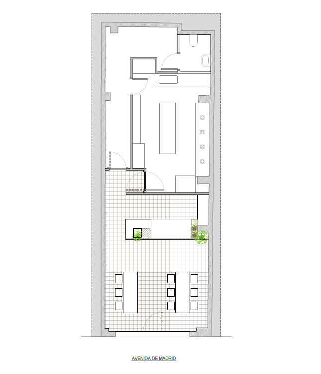 이 프로젝트는 알리칸테 근처의 Elda와 Petrer 지역 사이의 주요 교차로이자 가장 넓은 거리인 마드리드의 지상 1층에 위치한다. 프로그램은 요리가 주문되어 배달되는 공용 카운터와 전용 주방 사이 72.67㎡에 걸쳐 펼쳐져 있다. 조명과 재료의 마감은 이미 거리 수준에서 현대성과 전통을 결합한 디자인의 매력을 발전시켰다. 흰색 세라믹 패널에는 인테리어와 어울리도록 상호가 파란색으로 표시되어 있다. 세로 방향의 빛이 벽을 비추며, 두 개의 긴 테이블이 표시된 통로로 카운터에 직접 들어가도록 유도한다. 저렴하고 수공예적인 디자인으로 테이블도 테이크아웃을 위해 의도적으로 디자인됐고, 하얀 옻칠한 강판의 수공예 시스템과 오크 나무를 사용했다. 왼쪽의 파란색 벽과 오른쪽의 흰색 벽은 Castellón에서 디자인된 유약 세라믹으로 Proust의 "마들렌"을 연상케 한다.