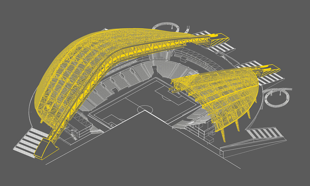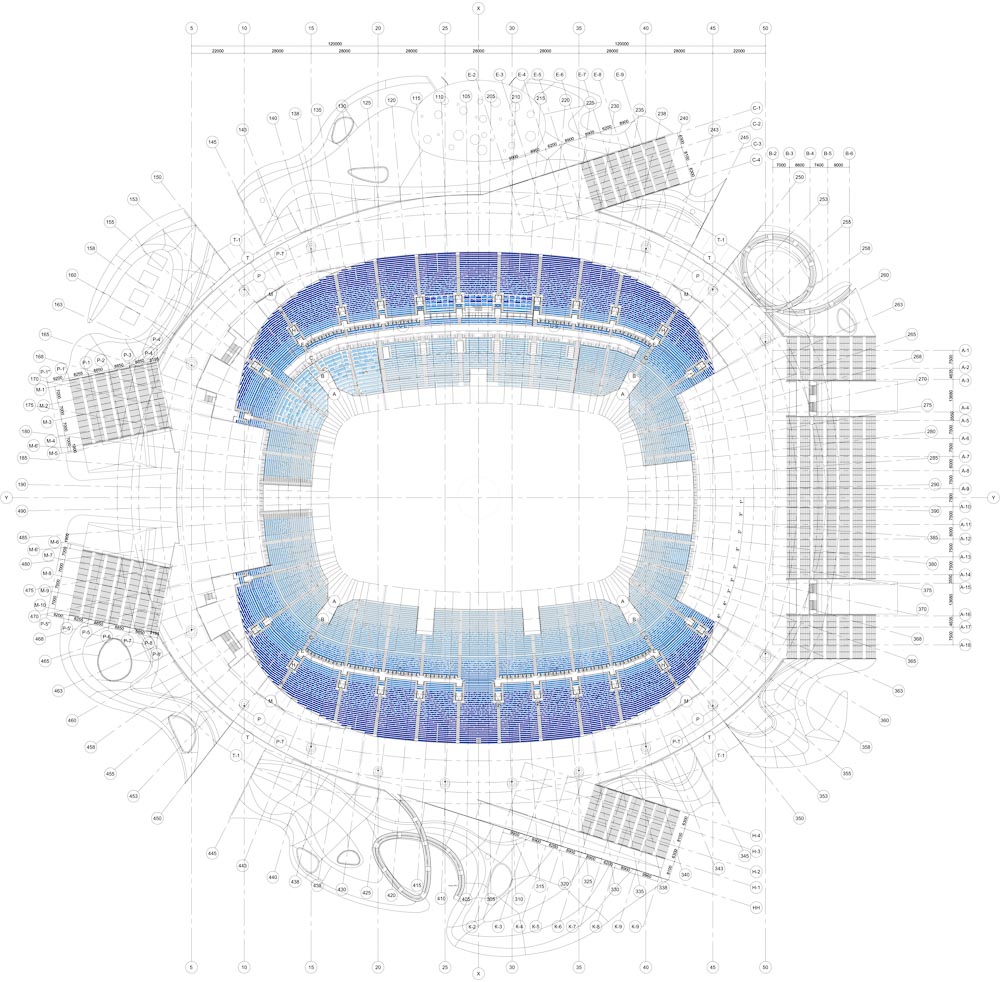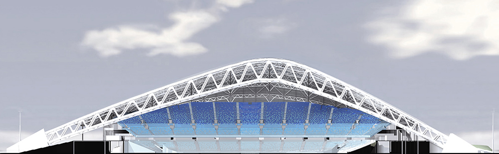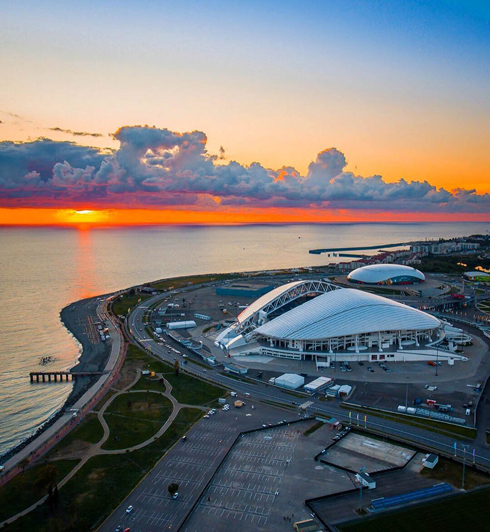 The stadium is for the opening and closing ceremony of the XXII Olympic Games and XI Paralympic games Sochi-2014, reconstruction for the 2018 world Cup in Russia. In accordance with the concept of organizing the Olympic games, the stadium has a dominant role in the Opening and Closing Ceremonies of the games, as well as the awarding of winners and prize-winners. Thanks this the main planning idea of placing the building was predetermined - the formation of the main compositional axis of the Olympic Park. The Central stadium is the base, oriented to the Olympic flame and the place where the winners are awarded. A ring of the main sports facilities of the Olympic Park is formed around this axis. The antagonism of the mountain and the sea became the main inspiration of the architects. The stadium is designed and built as a seven-storey oval structure with a two-storey podium with a lower level of stands for spectators and a multi-light, multi-level space of the upper stands located above the podium. The basis of the stadium cover architectural design is the accentuated arched arches over the East and West stands, along the North-South axis. In the profile, arched arches are asymmetric with a bend from the center and a slope from the vertical axis. The largest arches in the practice of domestic construction with a span of 288m, carrying a spatial coating shell over the stands filled with ethylene tetrafluoroethylene, were completed at the Fisht stadium in Sochi. The building is designed for a seismic rating of 8.5 points and was additionally loaded with temporary stage structures for Olympic ceremonies, which turned the stadium into the largest auditorium in the country.