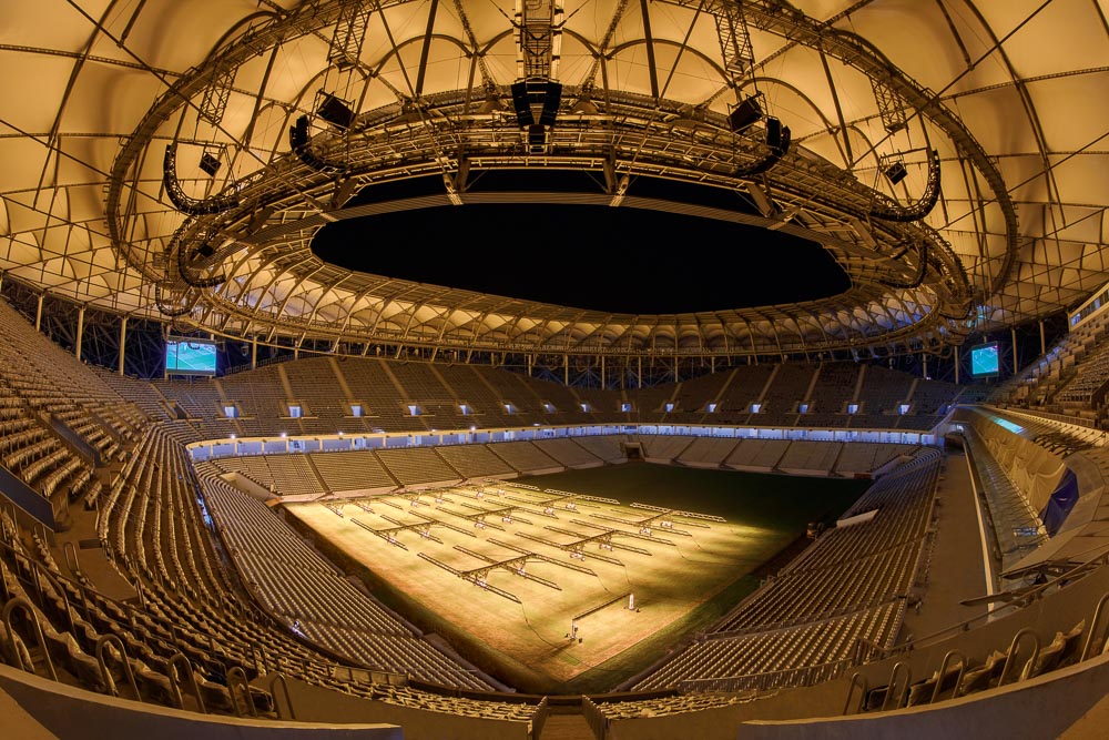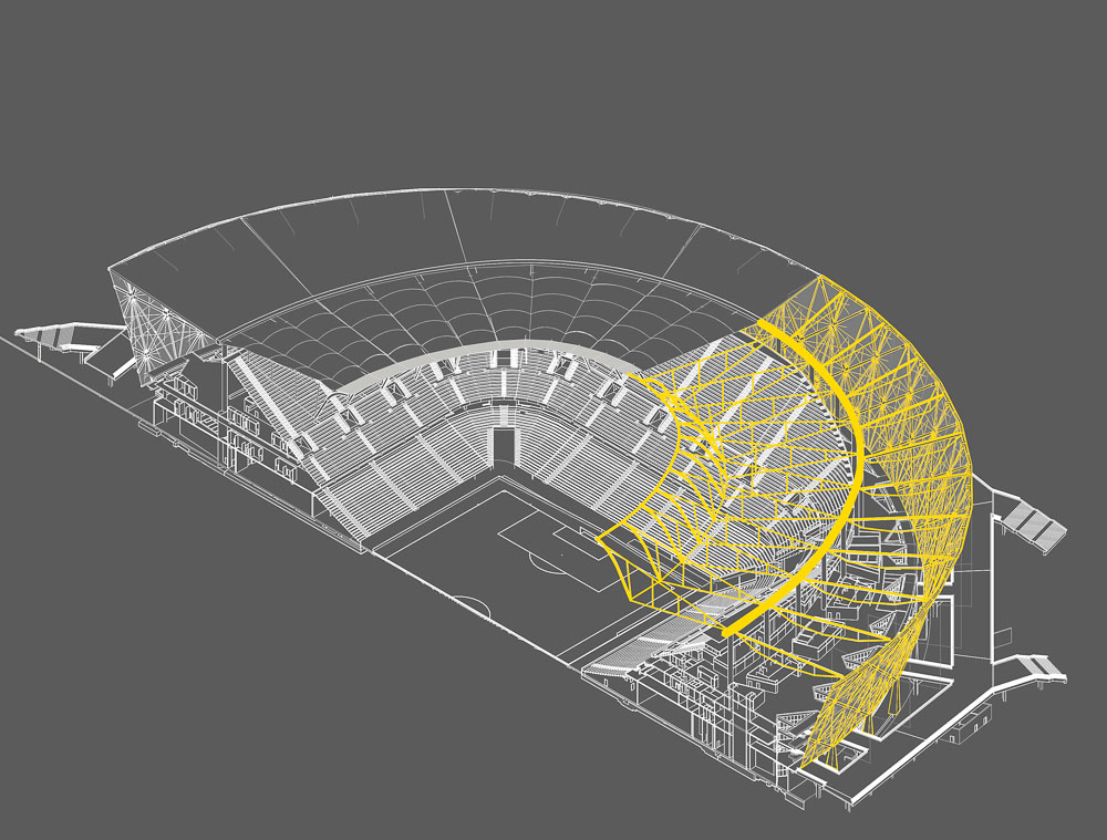 Due to the design solutions, it was possible to obtain a light "air" structure of the stadium's surface with a large extension over the stands - more than 46m.