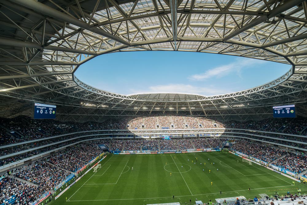2018 러시아 월드컵을 위해 지어진 사마라 축구경기장은 돔형식의 축구 전용 경기장이다. 가볍고 현대적인 금속 프레임 구조체가 돔의 형태를 지지한다. 지름 330m의 하늘과 연결된다는 의미의 돔은 사마라가 러시아 우주 산업의 중심 도시임을 상기시키며, 외형만으로도 우주의 이미지를 떠올리게 한다. 경기장은 주변과 조화롭게 어우러질뿐 아니라, 다양한 목적의 관중을 위해 혁신적인 공간 사용이 제시됐다.
