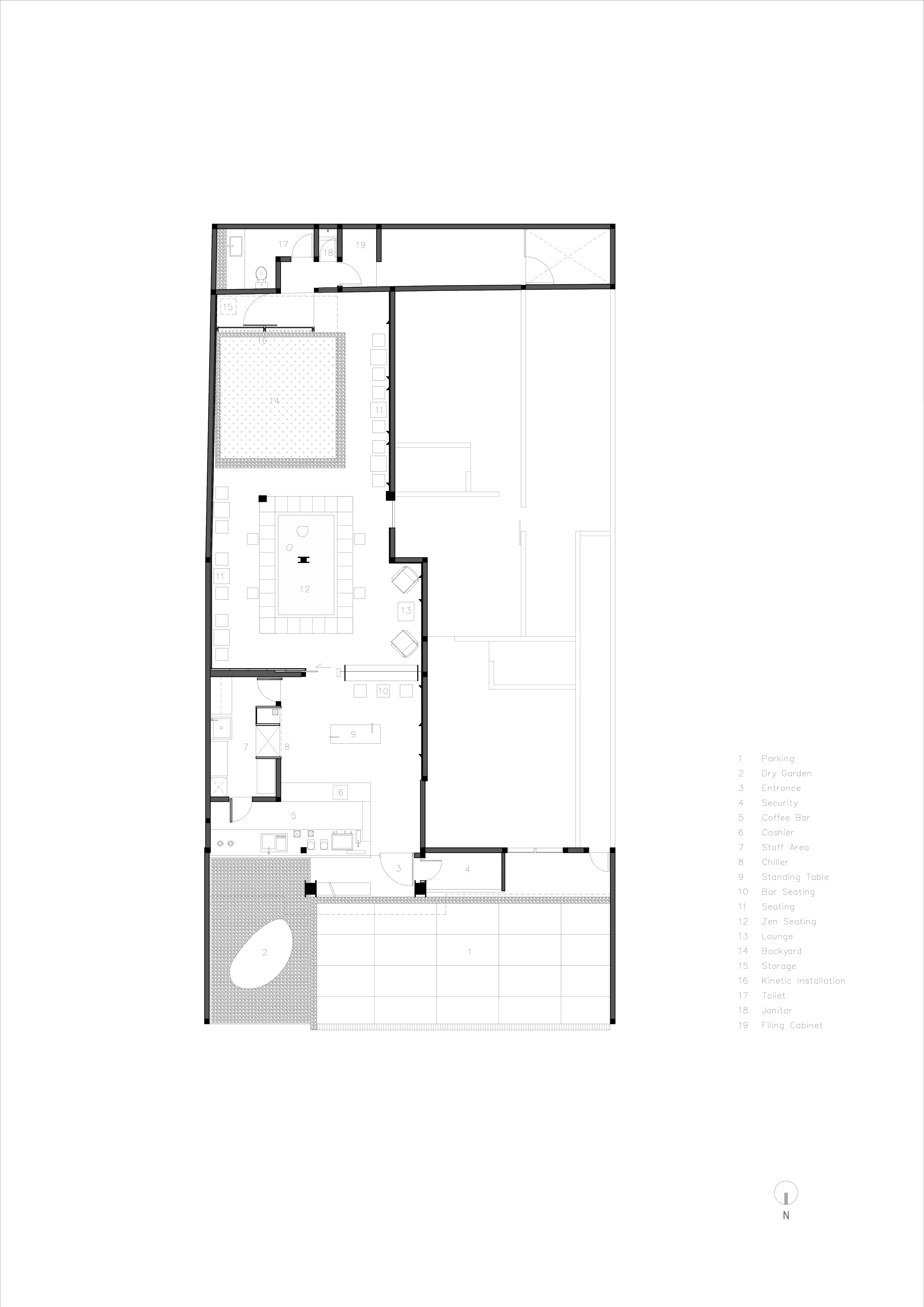 The design embraces the spirit of the past existing place, it begins with understanding the existing house that looks ordinary is nothing but extraordinary. Through a careful adaptive reuse interior and facade preservation, the designer aims for people to come here as they come to a home-feel like environment, not a busy commercial coffee shop. With the absence of walls, open layout, and highly transparent front shop that shows the inside activity of the coffee making process, a modest coffee-home appears as an open and welcoming place in the neighborhood.