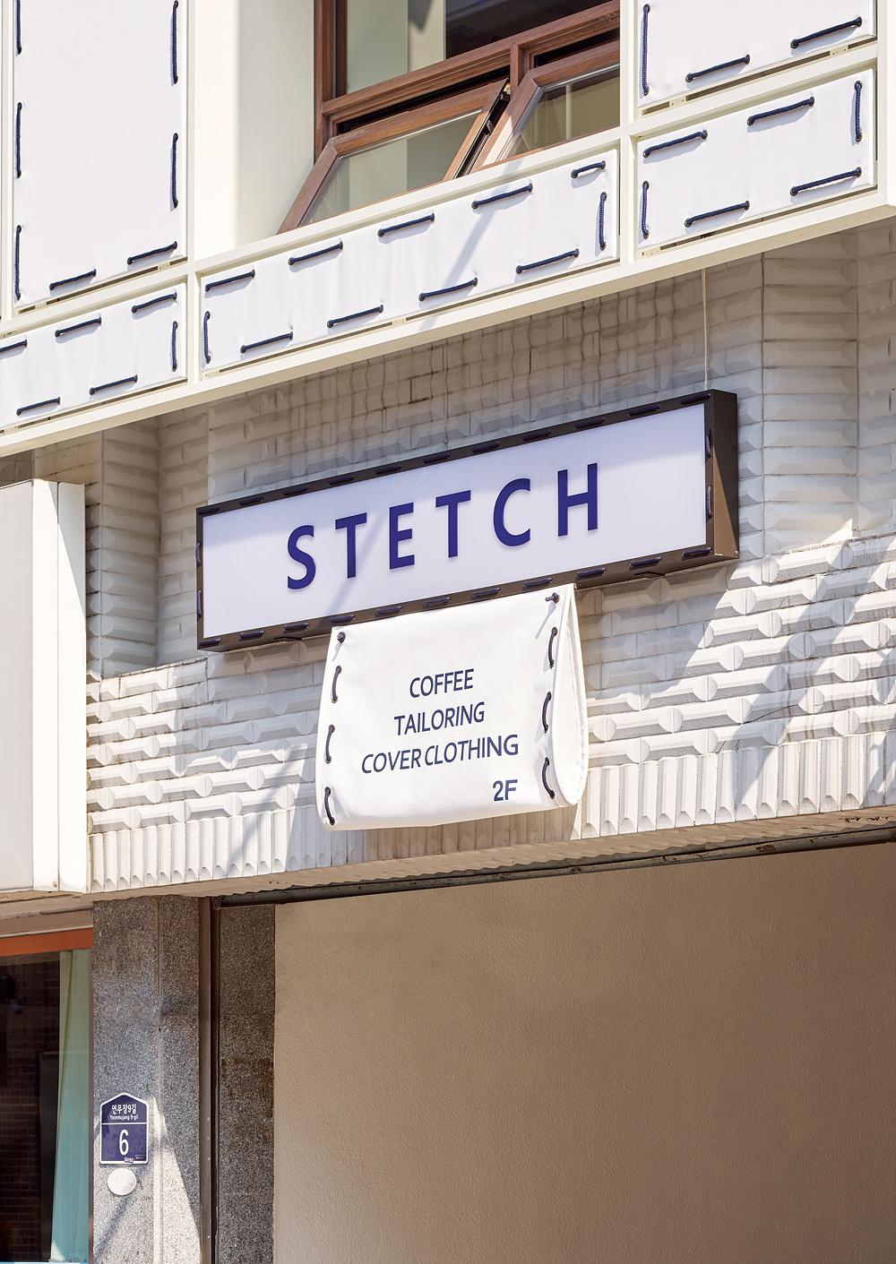 카페 스테치는 한 때 평생을 재봉사로 이름을 떨쳣던, 하지만 지금은 희미해진 부모님의 이야기를 바리스타 아들이 성수동에서 다시 재해석하여, 이 공간을 부모님께 트로피로 선사하고 싶다는 클라이언트의 스토리에서 시작된 프로젝트이다. 공간은 바리스타인 클라이언트가 커피를 만들어낼 바리스타 공간과, 재봉사였던 부모님께서 상담 및 수선 업무를 하실 수 있는 테일러 존이 마련되어 있다. 카페 스테치가 생긴 전, 실제로 이 곳은 수선집으로 사용되던 공간으로, 우리는 ‘현대적으로 재해석된 과거의 회상’ 이라는 컨셉을 잘 타나낼 수 있는 또 하나의 아이디어를 떠올렸습니다. 바닥의 반은 새로운 마감재이지만, 반은 기존의 마감재가 그대로 드러날 수 있게 재사용하였다. 이 공간이 과거서부터 수선집이었던 세월의 흔적을 남기고 싶은 동시에, 우리의 컨셉도 담아내고자 하는 의도로 디자인되었다.