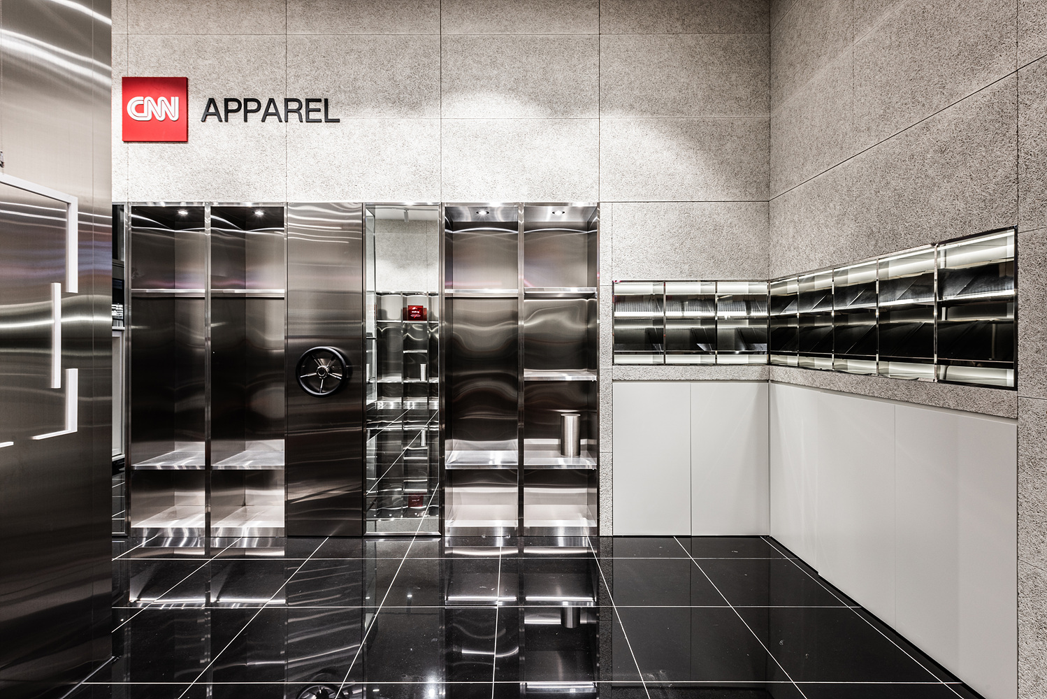사실파악과 사실 기록, 그에 입각한 보도 창구로써의 CNN의 본질을 보여주고자 함이며, 이는 일상에서의 사소함과 행복, 즐거움의 기록으로 이어질 수 있다. 때문에 다양한 의류는 각각의 TAG로써 구분을 해주고 뉴스데스크를 연상하듯 깔끔하고 밝은 무드는 신뢰감과 제품의 본연의 모습을 부각시켜 줄수 있다. 일부 기록실의 보관함 또한 공간 자체의 실용성과 디자인을 함께 적용함으로써 효율을 높여주게끔 하고자 하였다.