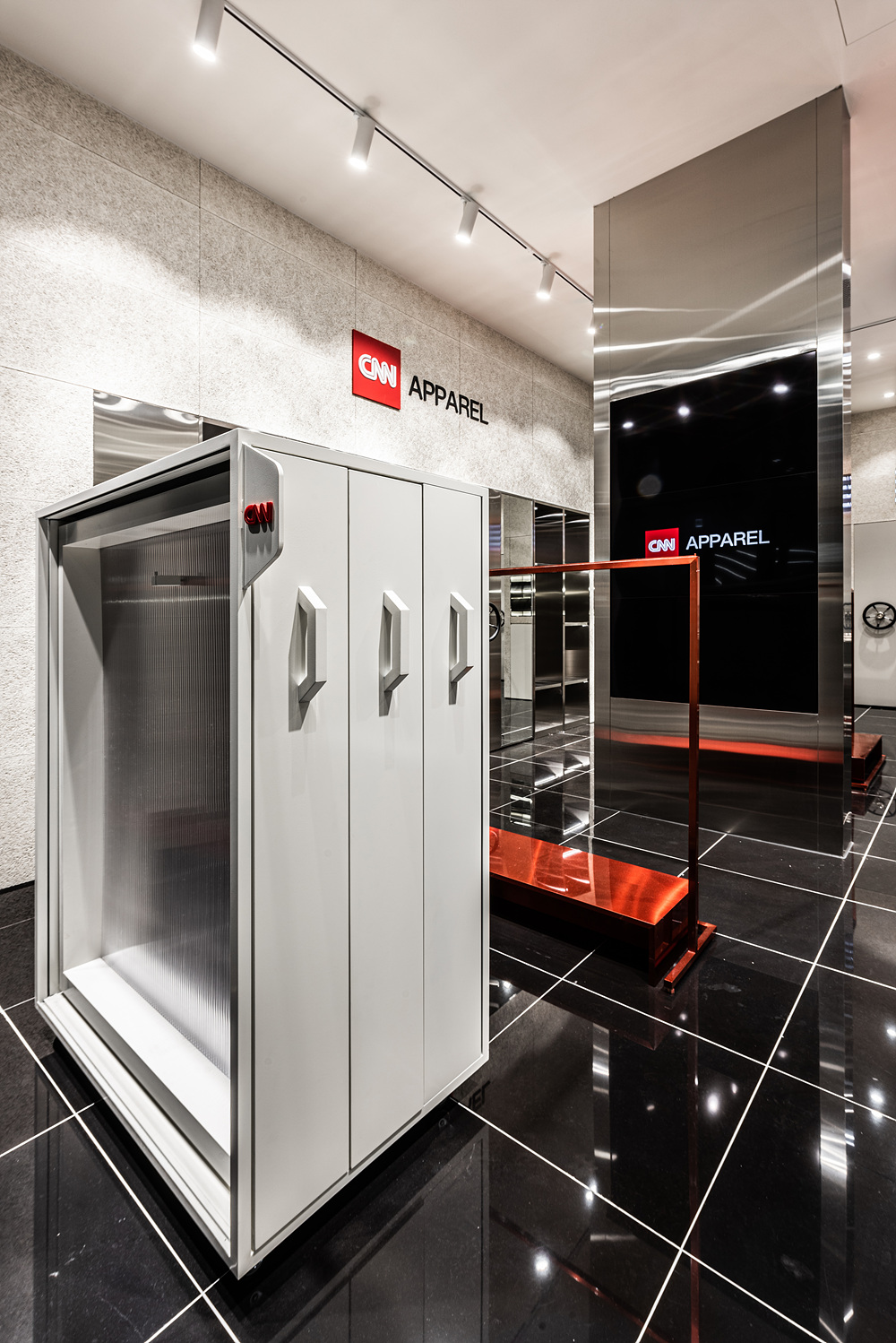 It aims to show the essence of CNN as a news outlet based on fact-finding and fact-recording, and this can lead to the recording of trivialities, happiness, joy in everyday life. Therefore, the various clothes can be classified by each TAG, and the clean and bright atmosphere, which is reminiscent of a news desk, can emphasize the trust as well as the original appearance of the product. The design and practicality of space itself were applied with some of the archive storage boxes to increase efficiency.