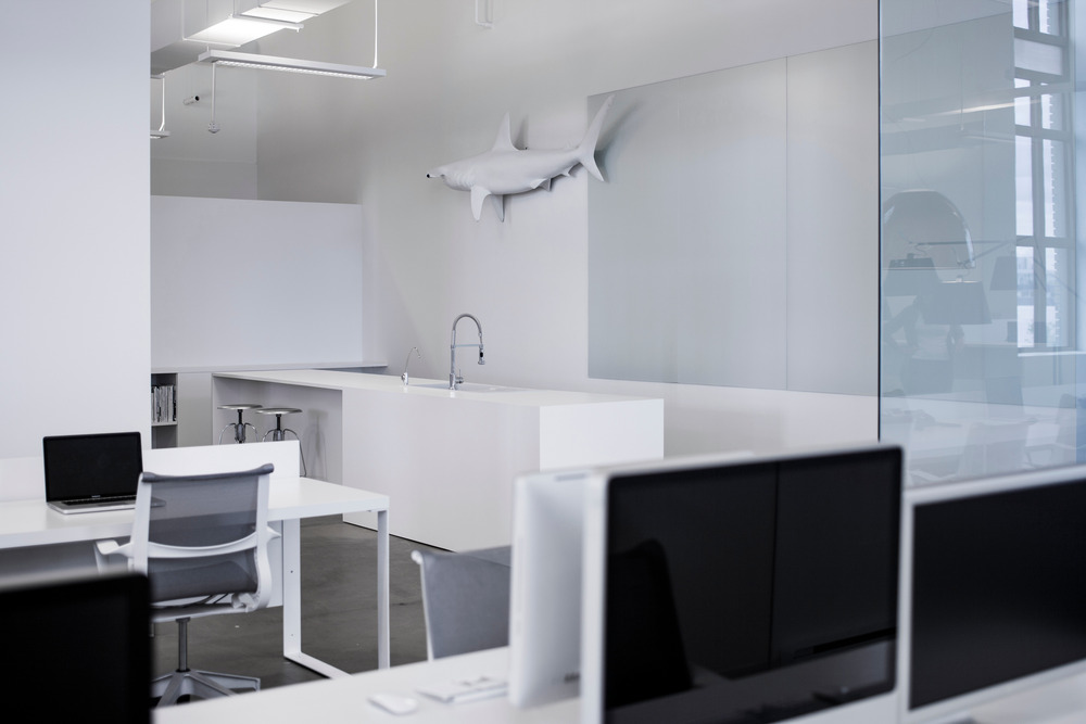 주요 개념은 30피트 높이의 천장에 맞춰 광활한 공간을 휘두르는 것이었다. 회의실은 높은 유리 패널로 둘러싸여 있어 음향 프라이버시를 보호하면서도 상자가 공간 안으로 미묘하게 떠다닐 수 있다. 이 방은 사무실의 주요 장소인 36피트 주문 제작된 공동 테이블의 시각적 확장이다. 이 공간에 인접한 행정업무 공간들이 흰색 세로 패널로 나뉘어 있다. 실험실 같은 부엌 공간은 긴 직사각형 물체가 자리 잡고 있는 모습으로 표현됐다. 마지막으로, 라운지는 사무실의 공간적 진원지이며, 업무 구역이 모이는 비공식적인 회중 공간이다.
