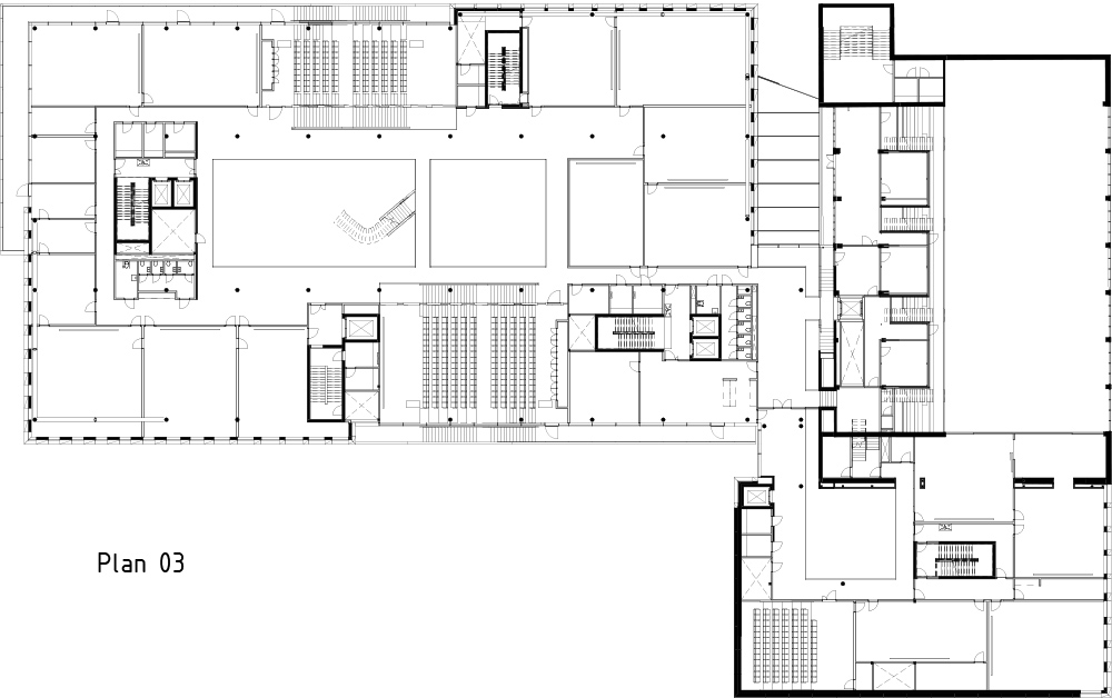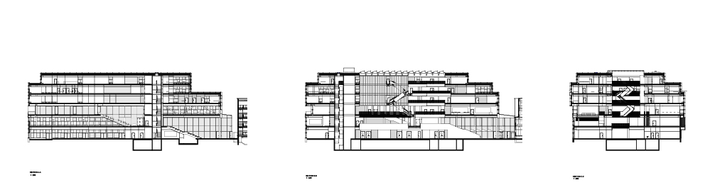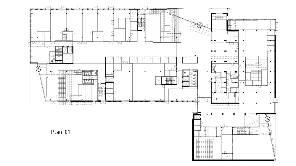 공모의 조건에 따라, 현시점의 새로운 랜드마크가 될 이 건물을 포함해 17세기의 격자 평면 내에서 전체적인 계획은 각기 다른 시대의 다양한 성격을 가진 공간이 보존되도록 계획됐다. 건물의 정면은 구조 프레임 가장자리에 매달린 커튼월로 구성된다. 다양한 각도의 알루미늄 시트는 입면 전체에 개방 및 폐쇄 구역을 생성하고, 다채로운 자연채광을 건물로 들인다. 알루미늄 파사드 유닛의 각도와 깊이는 입면의 방향과 기능에 따라 달라지므로, 자연 채광을 제어할 수 있다. 흰색 알루미늄의 균일하고 깨끗한 입면으로 새 건물과 대중목욕탕의 모더니즘 건축 사이에 대화가 이루어진다.