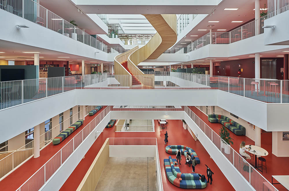 Mälardalens University offers educational facilities and workplaces for 4,000 students and 350 employees. The vision has been to create an open and inspiring learning environment that encourages natural interaction between students and staff. The new extension is carefully adapted to Paul Hedqvist’s public bath, which will be the new central hub and social meeting place on Campus.