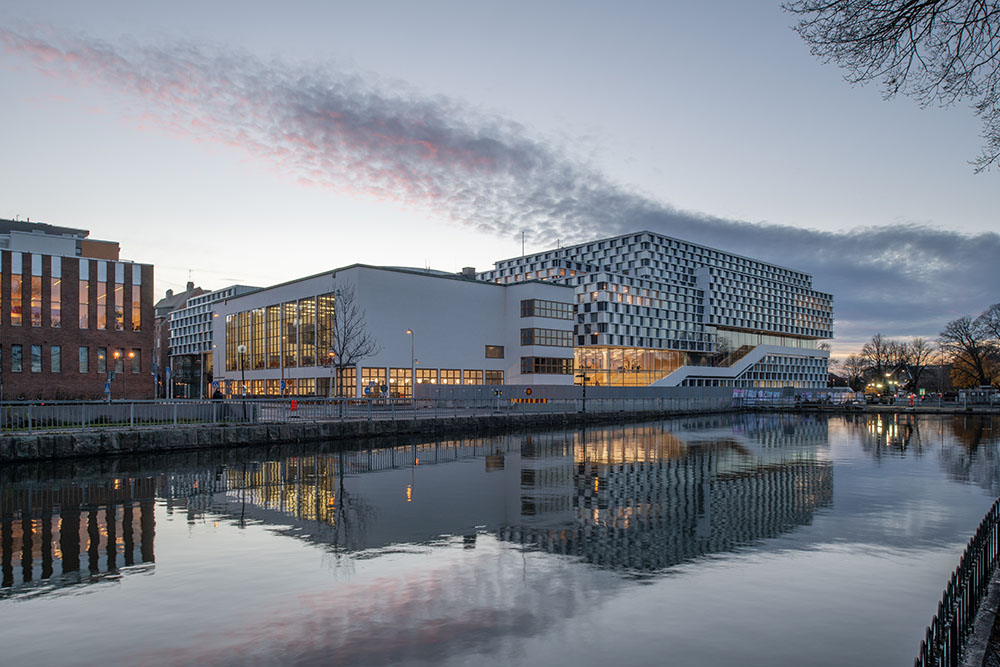 The competition for a new university building in Eskilstuna was announced in 2014, and the mission was to create a river-facing “building with character”, while also incorporating Paul Hedqvist’s iconic public bath from 1932. Eskilstuna’s urban history is a protected area of Swedish national interest for cultural heritage, which is clearly felt in the city centre, with its preservation of various periods of high-quality architecture. The public bath was the first modernist building to be built outside Stockholm.