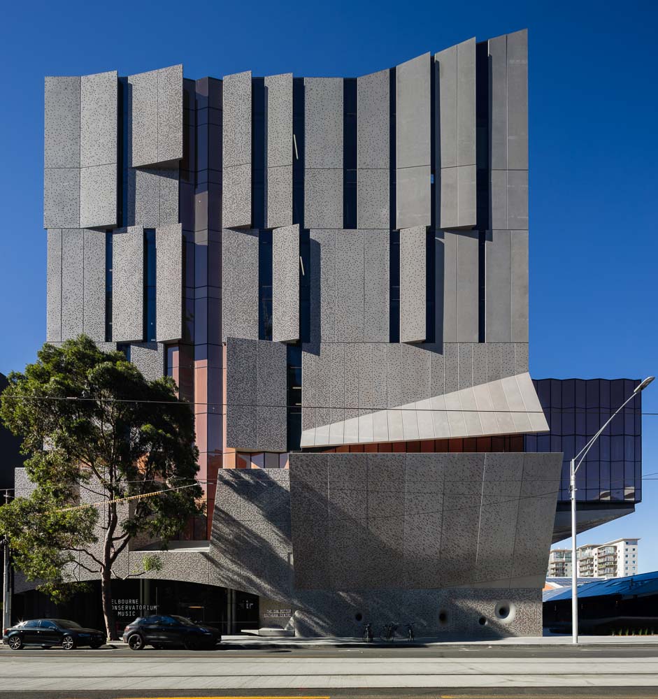 The new home of the Melbourne Conservatorium of Music celebrates the activities of music rehearsal and practice – a green room for Melbourne’s arts precinct.