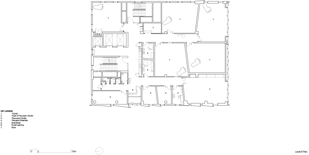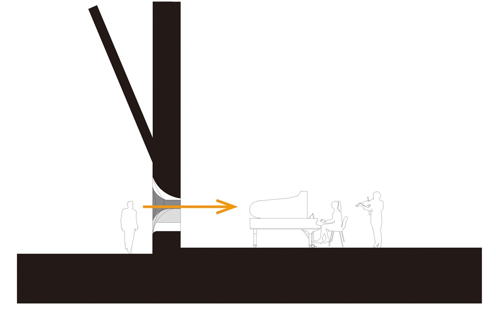 이 학교는 음악 수업의 내부를 감상하는 것으로 지역 사회와 소통한다. 건물 전반에 걸쳐져 있는 교육 및 리허설 공간들은 커다란 둥근 창, 경첩이 달린 패널 그리고 수업 활동을 아낌없이 보여주는 숨겨진 창들로 수놓아져 있다.