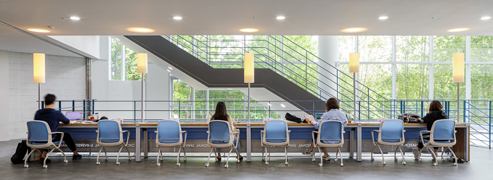 We propose a digital knowledge playground as a complex cultural space that will serve as a venue for various cultural and relaxation activities such as exhibitions, lectures, and performances for Chonnam National University students preparing for a new era. The knowledge playground, which is composed of free planes and an open spaces that deviate from the grids so that diverse thoughts and creations can be made, is expected to become a place to radiate youth, a central space for cultivating creative talents, and a space of stay where free digital plays and learning are possible.