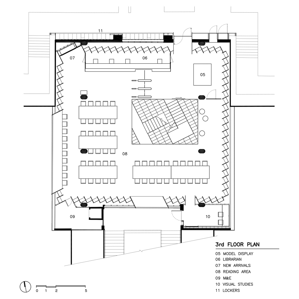 Libraries today may continue to play an a important role as a learning space but it may not be the same anymore. There is an urge to rethink what a learning space is; and in particular what a learning space for an architecture school could become. To re-activate the library, the project has expanded the meaning of the architecture library to be more than a place for reading books, but to become ‘a creative incubator’ for students of architecture. Various programs are integrated into the new library. They range from a co-working space, an exhibition space, a pin-up space to an occasional lecture space where the library becomes a place for the exchange of ideas, and it includes not only physical books as sources of knowledge and inspiration but also digital media, movies, exhibition, etc.