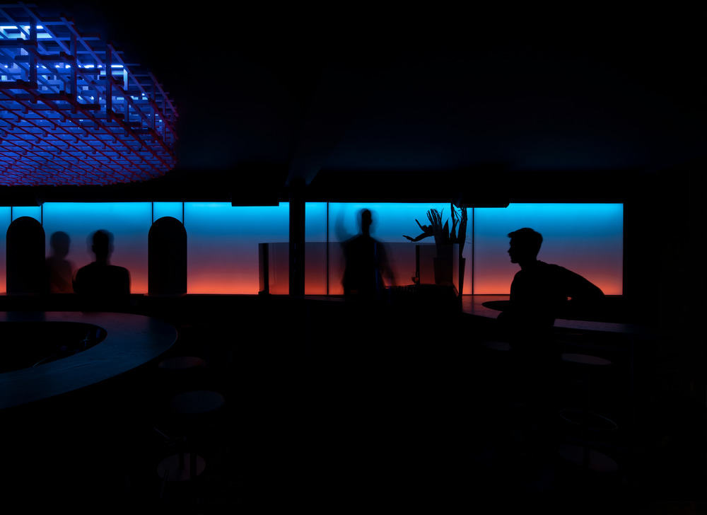 건축, 빛, 사운드 스케이프는 모두 하루 중 각각 다른 시간에 바의 분위기를 구성하는 원료로 다루어졌다. "따뜻한 빙하" 공간은 색상, 재료 및 빛의 따뜻하고 차가운 이중성을 활용한다. 제임스 터렐(James Turrell: 빛을 이용하여 기하학적 형태와 공간적인 환영을 창조하는 미국의 현대 설치미술가)의 설치 미술을 연상시키는 벽걸이 캔버스에 부드러운 빛이 투사된다.