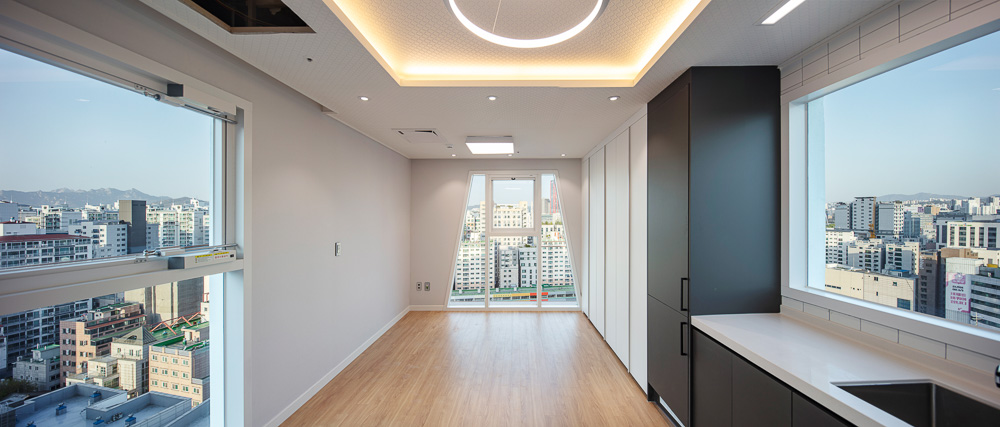 The scenery of traditional villages, which led to the yard where we played in our childhood, was shown and communicated through the “wall”. This kind of ‘restricted interference’ like low walls surrounding the yards should be an essential element of urban architecture. However, in a vertical city, there can be no such yards. So, we just hope that a thin balcony will serve that role as yards and walls in the villages. Tri_poly is the story of an architectural process to restore those lost features of our life from the urban architecture that is just ruled by Floor area ratio.