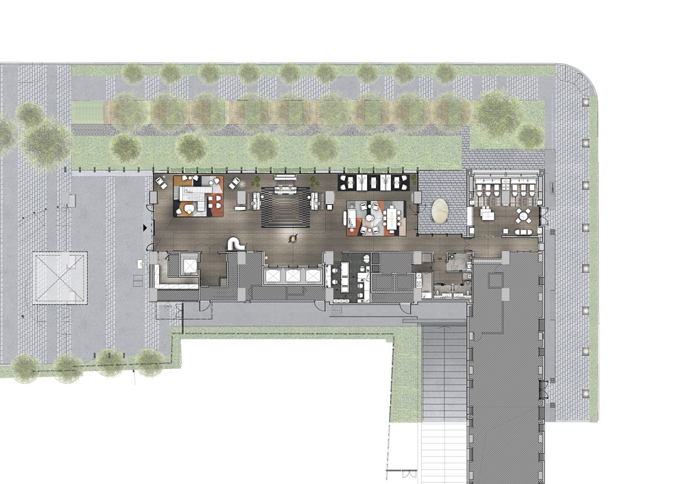 8m 높이의 공간은 한 세기 전 창고였던 대지의 역사를 반영하며, 목재와 철재의 활용은 인근에 있는 과거의 녹나무 및 식물들과 어우러진다. 거대한 프랑스식 창문들은 외부의 조경 공원을 이곳 여행객들의 따뜻한 “집”과 연결한다. 이는 마치 해피빌리지에 있는 56그루의 나무가 있는 기존의 작은 공원을 재창조하는 것처럼 보인다. 오래된 공원에 있던 모든 나무는 공동체를 위한 새로운 도심 조경 공원을 구축하고 현지 거주자들이 손님들과 따듯한 기억을 나누기 위한 “공유 녹지”가 되기 위해 콘셉트 아래 이식되었다. 디자인 도구들인 “창문”과 “층”은 전체 내부 공간을 가로지르는 필름의 물리적 특성으로부터 유래되었다. 화면의 역동적인 곡선들과 부유하는 빛은 세심하게 보존된 기억들을 보여주면서 필름의 형태, 평면과 파사드의 겹쳐지는 층과 공간의 테두리들을 비춘다.