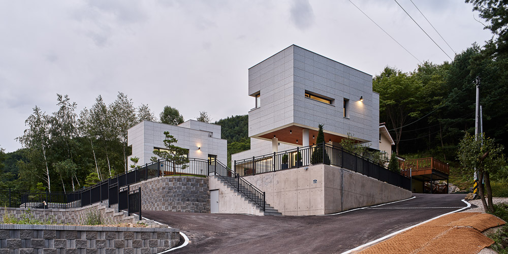 At the request of the owner to build a townhouse above the well-established house for 15 years, the townhouse, which will be at a higher level than the existing house, was designed with the idea that it should be an objet in harmony with the natural scenery of Pyeongchang and the existing 15-year-old house. The level was reorganized to reflect the unique topography of the site as much as possible to adapt to nature, and an outer space was constructed to expand and connect the inside and outside landscape elements to prevent disconnection between the site and the site.