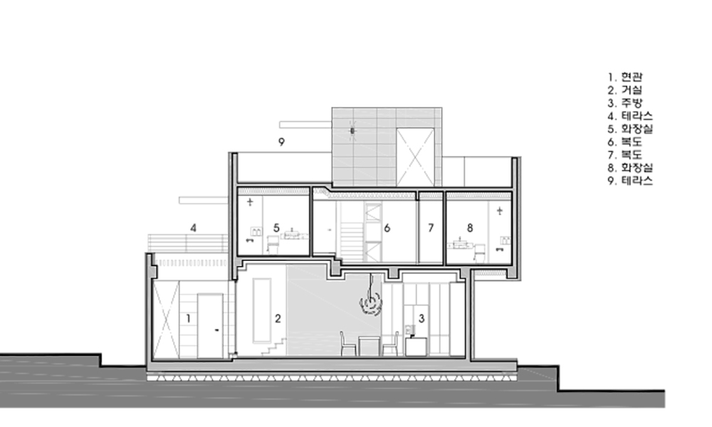 I imagined a view, a viewable building, and a view that would be seen from each space on top of the time calculation of the site. The hills of the neighborhood entrance from the main room, the front yard from the living room, the backyard and access road from the stairs, the village from the second floor, the mountains facing from the rooftop, and various rural landscapes were the backgrounds to be designed. How much can an architect narrow the difference between what is seen and and protect the existing scenery? Baegokpo-ri which I visited again 15 years later from 2006 to 2021, had land, buildings, and client became friends with each other, and I try to reconstruct the landscape into a new space composition through another townhouse. Hoping that this will also be a natural object on the site.