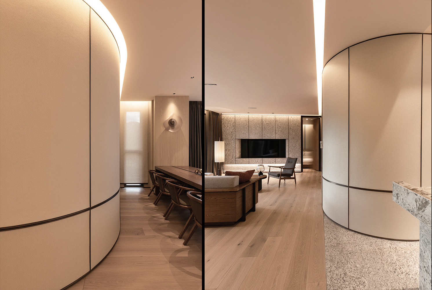 The textile design, which was completed by graphicalizing the shades and picturesqueness of Seoraksan Mountain’s sea of clouds, was applied to the carpets in the lounge and common halls to metaphorically capture the design like a watercolor painting. In the 211 rooms of four types, a wall close to the entrance of each room was formed in a round way to maximize the field of view, and to allow the four seasons of Seorak to naturally coexist inside and outside. The boundaries between the spaces were obscured with openings and closings to allow them to be connected and overlapped variably, and we tried to design them so that the depth and function of the spaces could become diverse depending on the user.