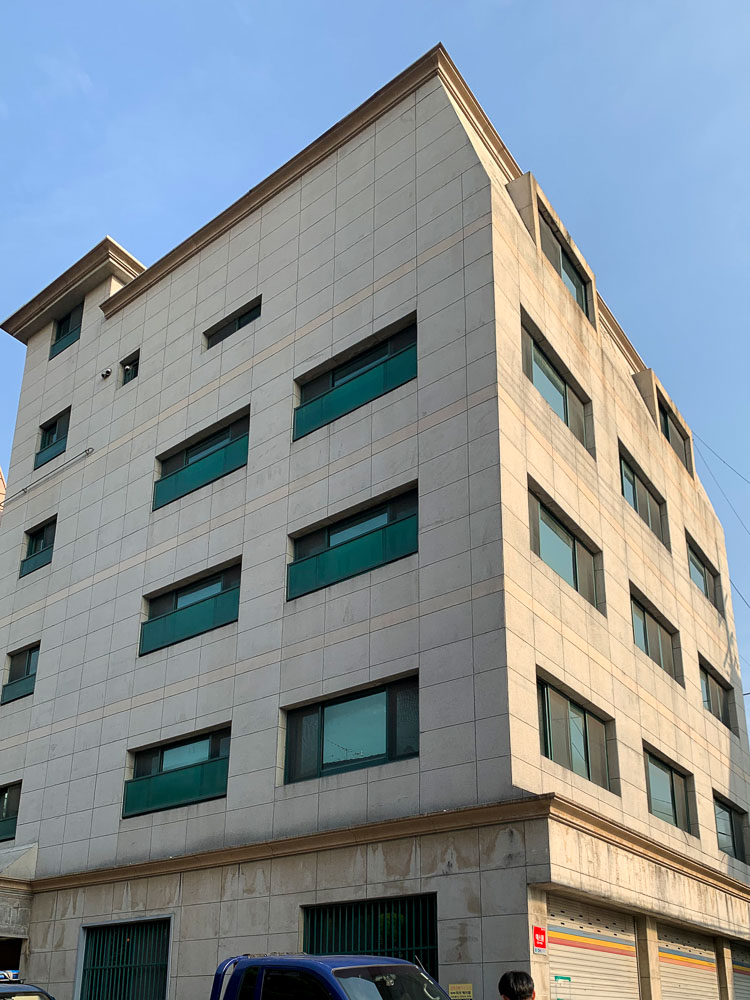 최초 건물의 양태는 드라이비트 외관을 가지고 있었으며, 그 또한 과거 자기질 타일 외관에 덧방시공한 결과물이었다. 과거 법규에 따라 도로 사선제한에 의해 건물의 전면부가 깎여있는 상태였고, 4층까지는 라멘구조이고, 5층은 내력벽 구조여서 전층을 사옥으로 쓰실 건축주에게는 구조 보강에 대한 요구가 필수적이었다. 또한 5층 건물임에도 엘리베이터가 없기 때문에 엘리베이터를 삽입하기 위해 모든 층의 해당 슬라브를 삭제하고 구조 보강을 해야 하는 작업도 필수적인 사항이었다. 1층은 카페, 2~5층은 사옥, 지하층은 복합 문화공간으로 구성하는 목표로 전면 대수선 프로젝트에 임하게 되었다. 골조 구조 보강을 포함한, 내외부 모든 요소를 재구성하는 대수선 프로젝트였다.