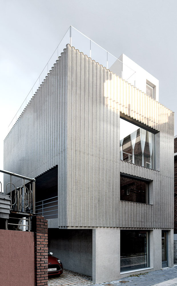 The building owner is a mother, who manages an art gallery and a boutique, and has a daughter who is a ballerina. She has captured every moment of her dancing daughter in the canvas and architectural space had to be a vessel that can accommodate their thoughts for the family who loved art and dance. The exposed concrete was designed as the embodiment of a wave-shaped acoustic sound to represent a trajectory of a beautiful life. To implement wave intervals with 200mm in pitch, various mockup tests and construction methods were attempted from the stage of forming a mold. The use of the materials for construction and decoration was minimized in both inside and outside the architectural space to implement the texture of exposed concrete to realize the essence of art. This is an architectural outcome containing the intention of the building owner to remember the essence of art and original idea, starting with the objective of pursuing the purity of materials.