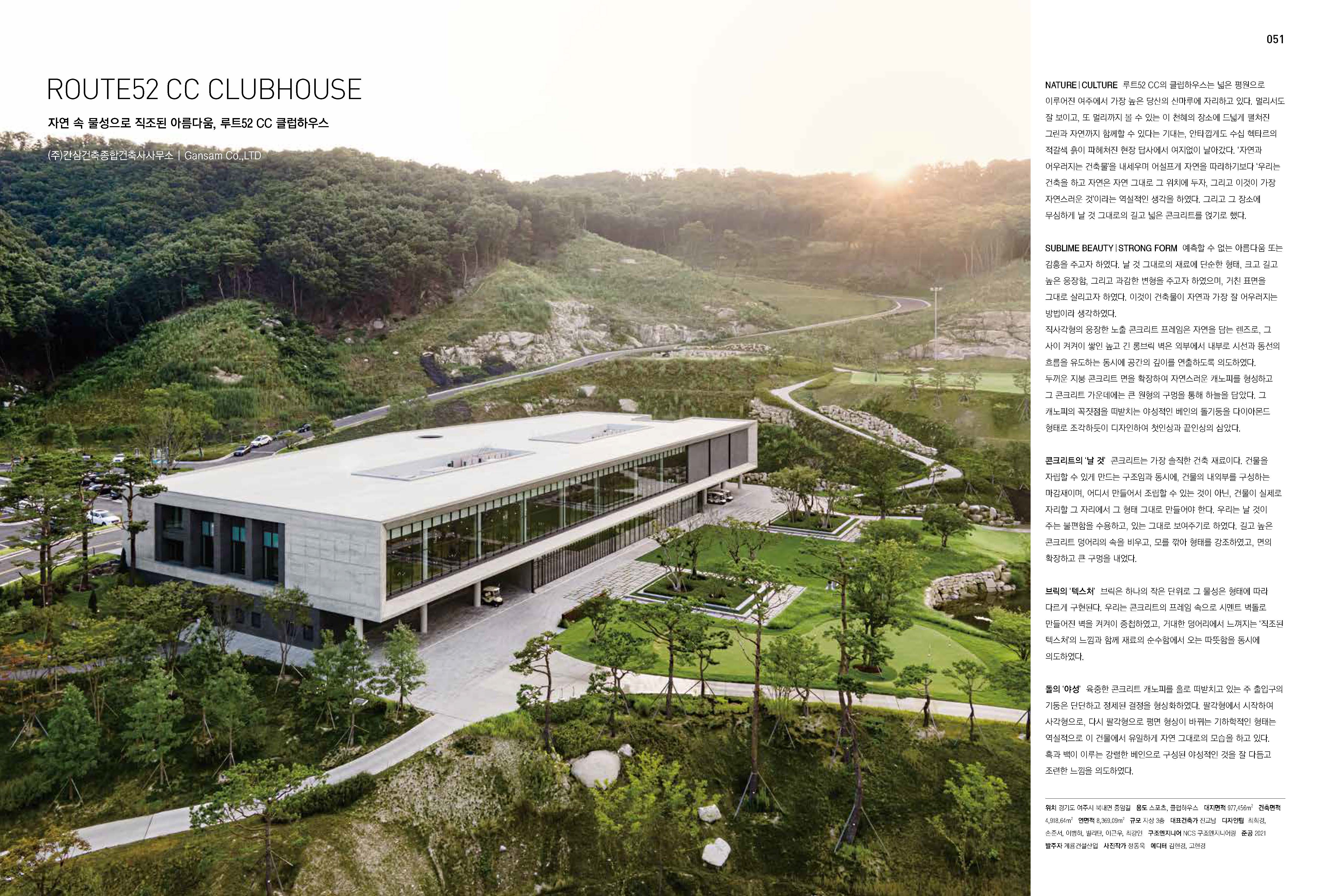 자연 속 물성으로 직조된 아름다움, 루트52 CC 클럽하우스 / (주)간삼건축종합건축사사무소