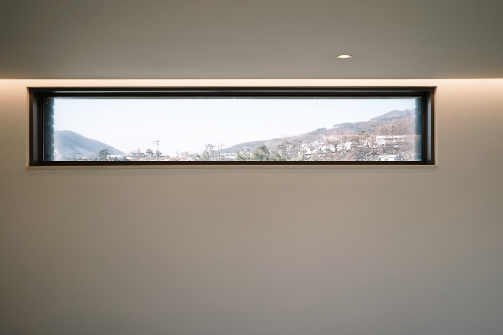 높고 넓은 대지와, 강을 향한 시각적인 축, 일조의 확보 등이 건축 디자인의 일차적인 지정학적 기준으로 작용했다. 각 공간에서 다양한 레벨과 각도의 대지의 풍경과, 강의 풍경을 내부로 끌어드리고 있으며, 천창과 고측창 등을 곳곳에 두어 시각축과 일조축이 다른 대지의 한계를 극복하고, 빛의 풍요로운 혜택을 종일 누릴 수 있도록 계획하였다. 대지의 주된 풍경은 강이 있는 북쪽이어서, 일조와 배치되는 부분이 있어, 상충되는 두 가지 큰 조건을 대지 안으로 받아들이는 공간을 구축하기 위해 다양한 고민을 하였다. 또한 논밭으로 구성된 넓은 수평성의 주변 대지들과 함께, 고요한 자리 잡음을 위해 최대한 주의를 기울이며, 건물의 형태를 검소하게 매만져갔다. 본디 오랜 시간 그 자리에 자리하고 있었던 것처럼.