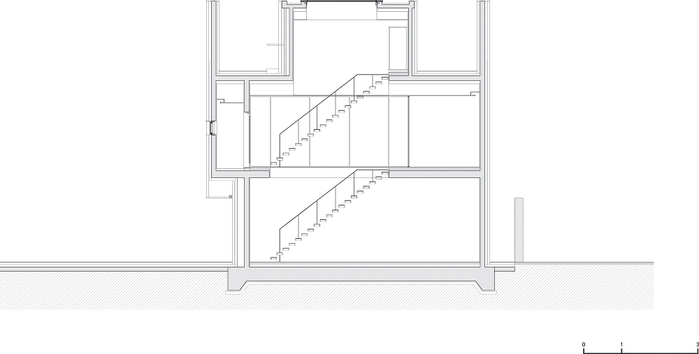 기존의 전체 대지가 유려한 산세를 배경으로 한 경사지에 위치하고 있고, 조망의 가치가 극대화된 곳이다. 따라서 내부 공간에서 그러한 뷰의 가치를 고양시키기 위해서 수직 동선을 배면으로 배치하였고, 개구부 또한 전면부로만 집중하여 동선상에 콘트라스트를 부여하여 설계하였다.